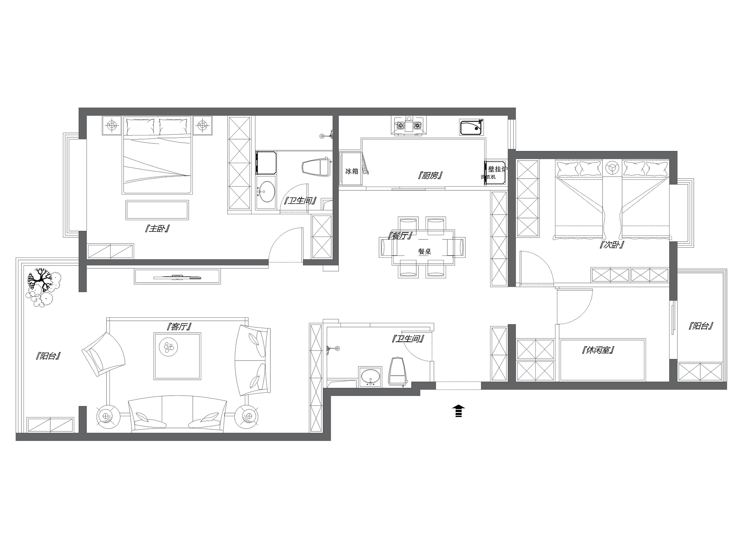 潮白河孔雀城110㎡兩居室現代簡約風格