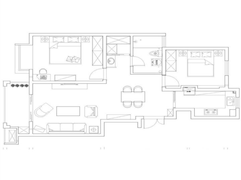 92平米二居室混搭風格裝修案例