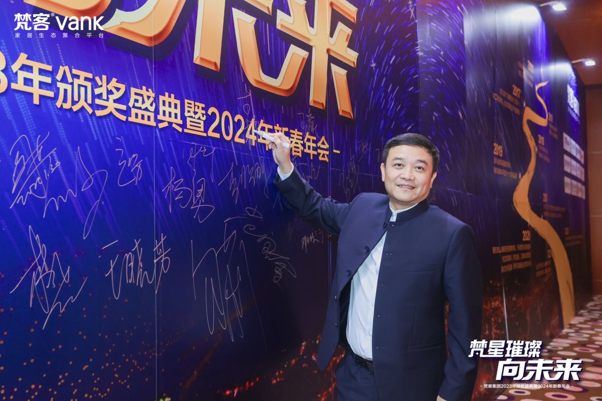 “在這美好的日子迎來了梵客集團2024年年會,首先祝大家新年快樂!在過去的2023年,市場麵臨很大挑戰,但是在梵客人的辛勤努力下取得了業績翻倍的成績。相信在大家的支持下,2024年梵客依然會取得更大的成績,實現業績再次翻倍的目標…”