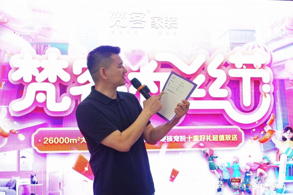 下午三點,活動正式開始。梵客家裝通過年年考核,連續八年都是北京廣播電視台生活+欄目施工聯盟單位、指定施工單位。連續四年,著名節目主持人春妮都為梵客家裝首席推薦官。此次活動,秦天老師專程為大家帶來《生活+》施工聯盟協議,讓裝修更有保障,助力業主裝好房、築好家,將寵粉力度推向高潮。