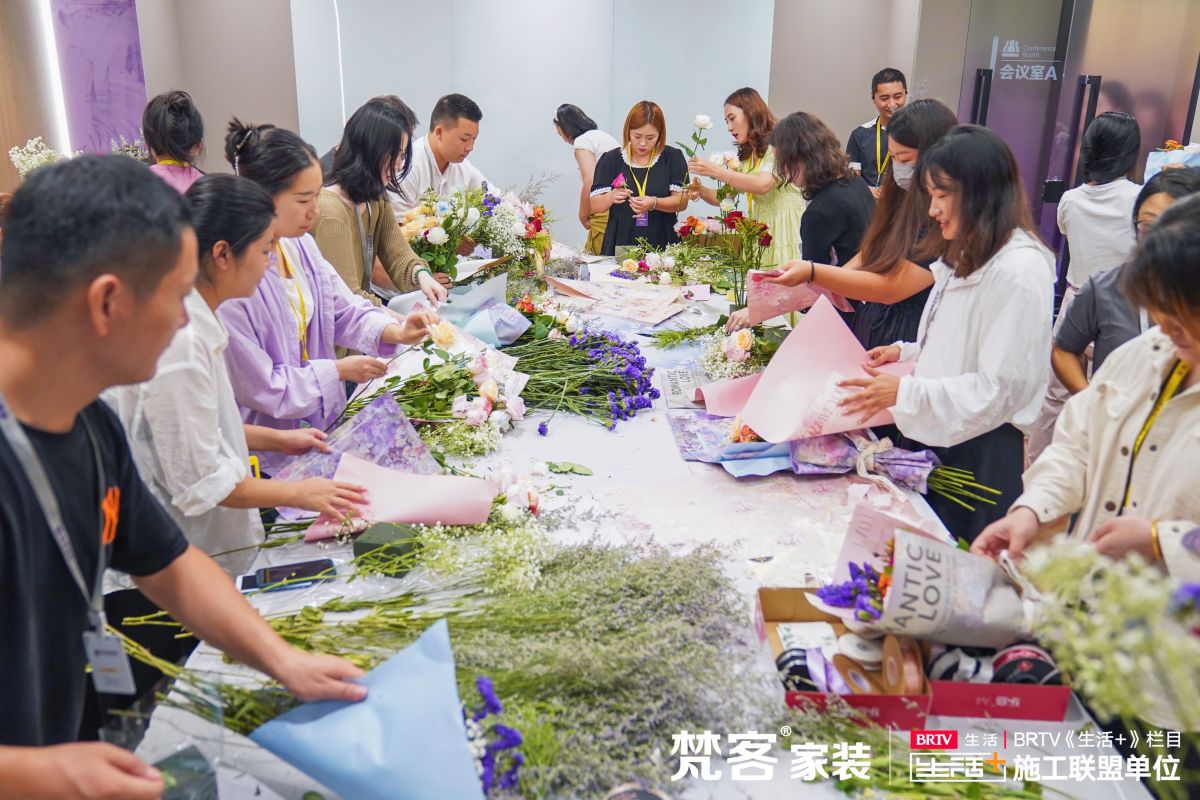 梵客員工生日會月月有期待,這一次綻放於繁花錦簇中。近日,梵客8月員工生日會在十裏河20000㎡家居生活體驗館大會議廳拉開帷幕,幾十名壽星寶寶被花海包圍。大家一邊享受公司送上的祝福,一邊DIY屬於自己的插花作品。