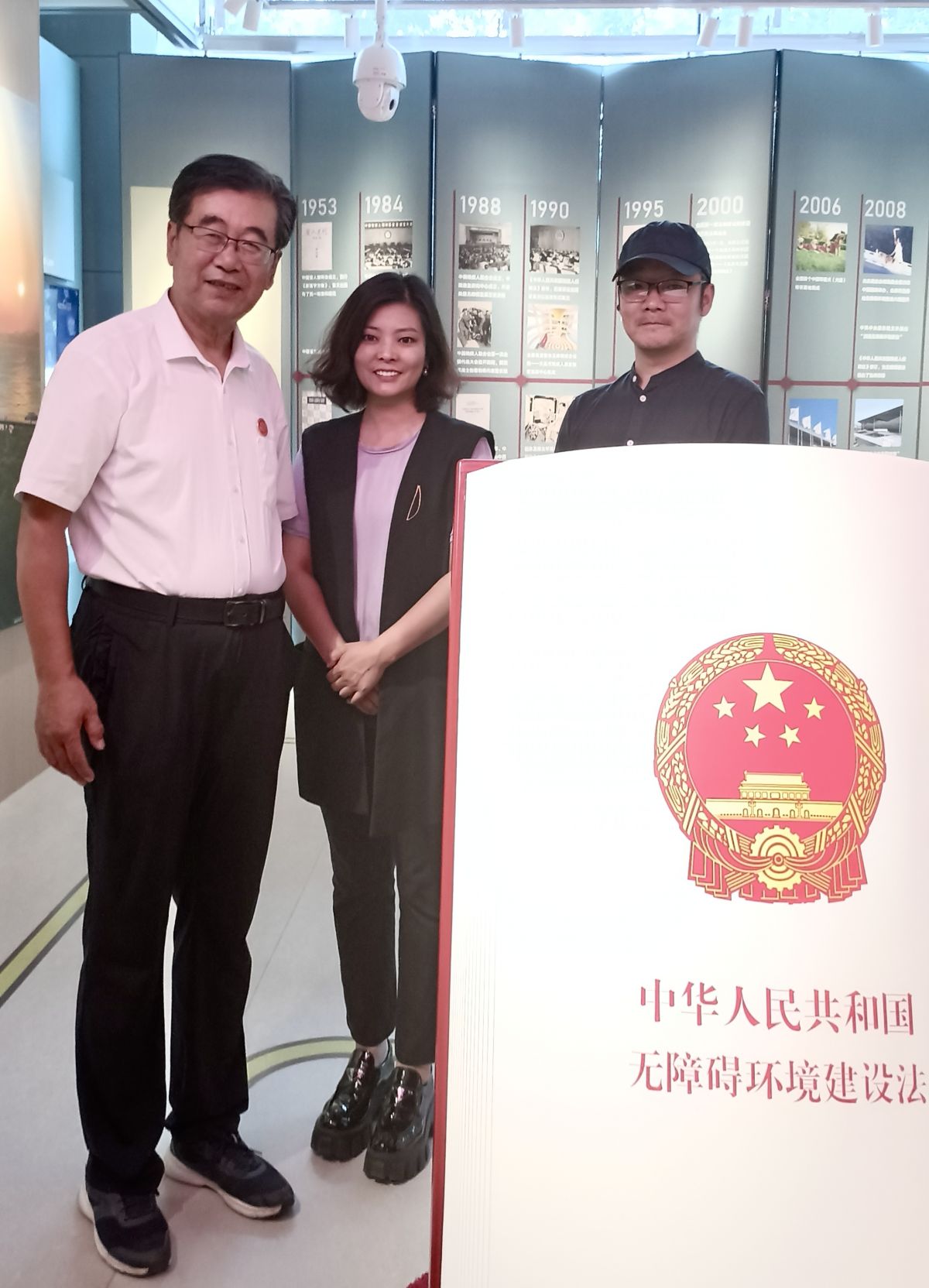 全國無障礙環境設計專家呂誌強(左)、梵客集團工裝事業部兼社會事業部總監勾麗莉(中)、無障礙體驗館主要設計師趙鵬(右)親切合影