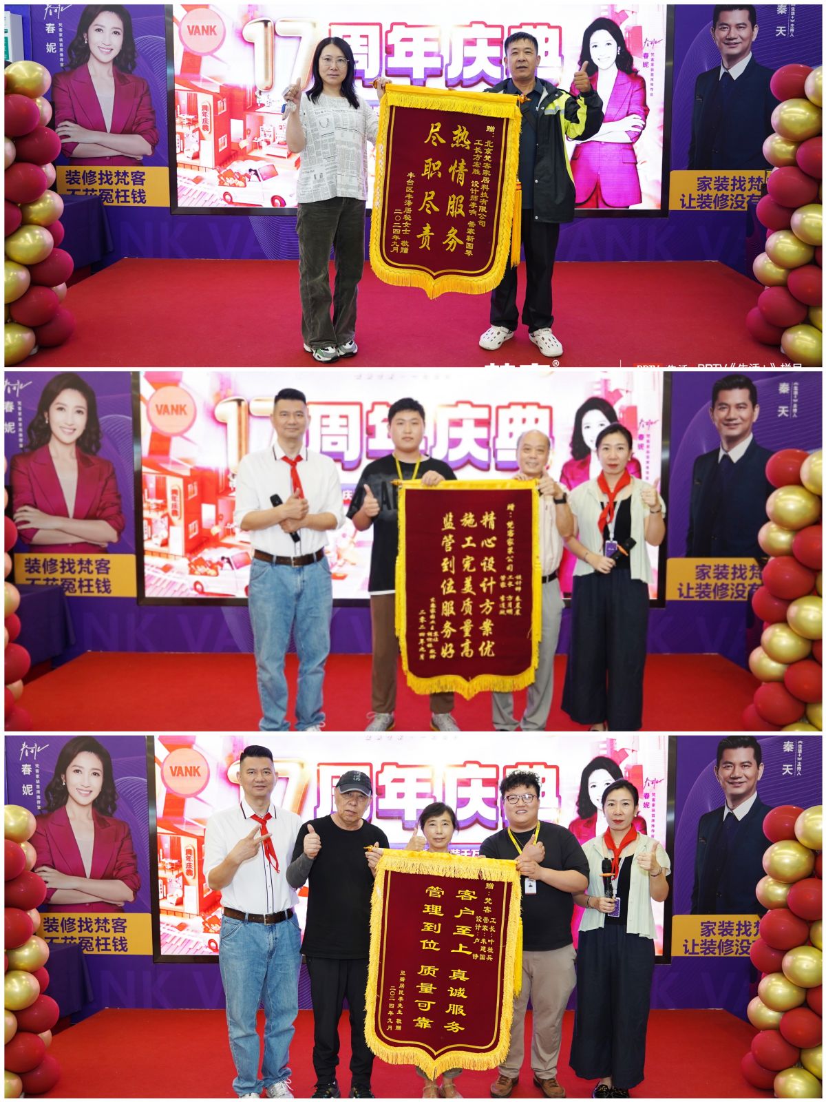 已經裝修好的業主朋友也送來錦旗,祝福梵客家裝17周年生日快樂,同時也表達了自己的感激之情:“總體來說這是非常愉快的一次裝修,設計師給我們設計的特別滿意,工長、管家以及工人都盡職盡責,我們非常感謝!”