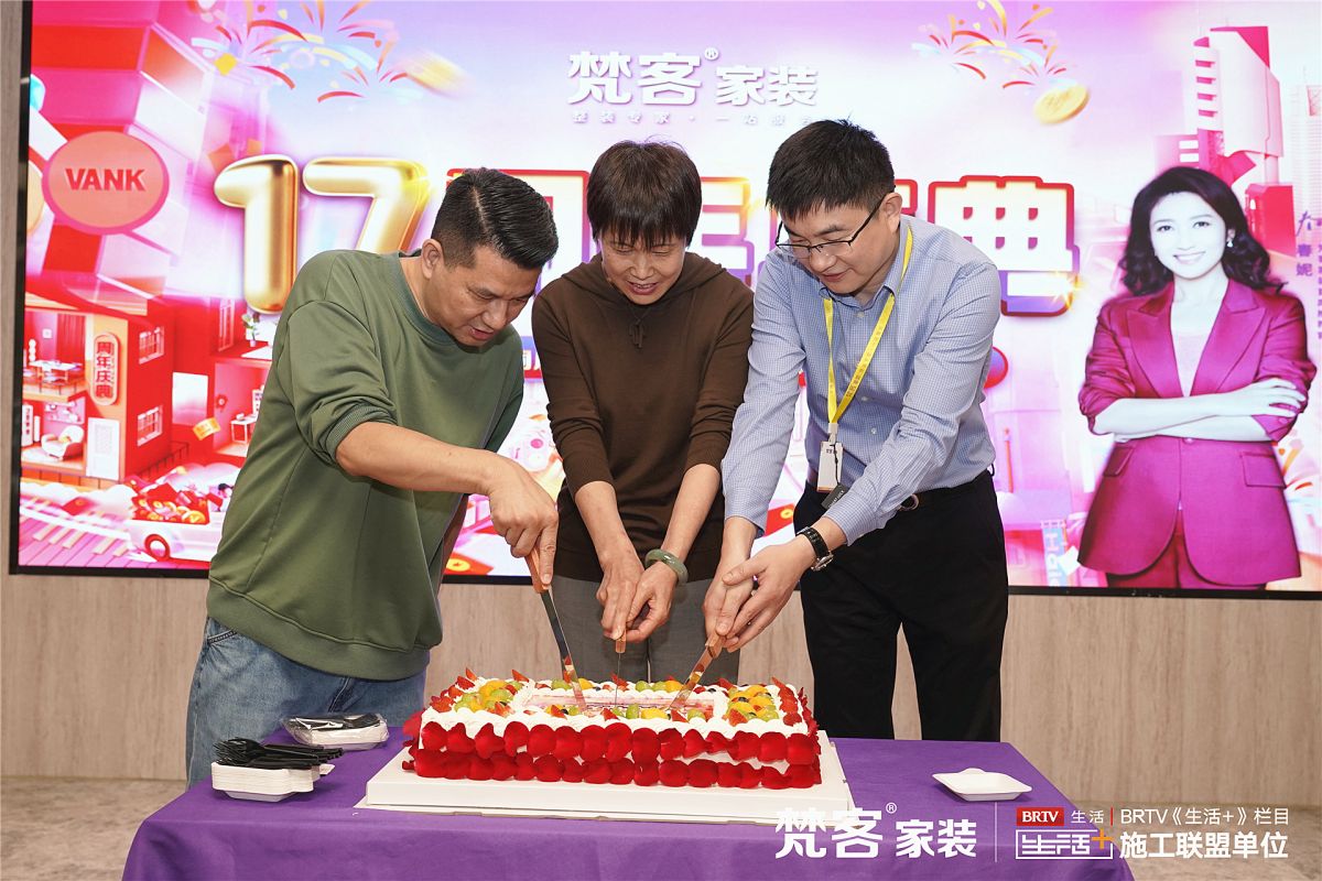最後,劉總和秦天老師還邀請業主共同上台切蛋糕,大家一起唱響梵客家裝17歲生日快樂歌!
