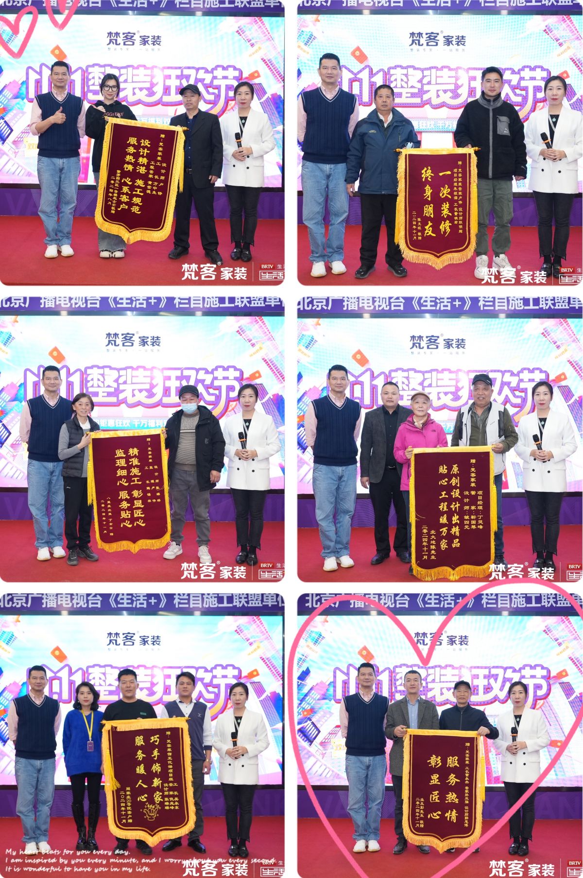梵客集團副總裁、梵客家裝總經理任琳女士和秦天老師共同發布了特惠細則,並接收了業主朋友送來的錦旗。大家對梵客的服務、產品讚口不絕。梵客家裝成立十七年,榮獲“最受消費者信賴的家裝品牌”稱號,深得京城百姓信任,著名主持人春妮連續五年為梵客家裝首席推薦官,再次體現梵客行業領軍人的地位。