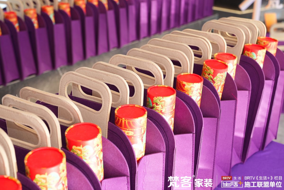十裏河店、奧體中心店,雙店同享這份喜悅,此刻的大廳已經被寓意“尊貴與慈愛”的帝王紫覆蓋,專門定製的印有梵客家裝字樣的手提袋內塞滿了神秘禮物,令人迫不及待想開啟盲盒。