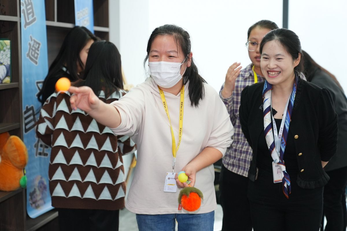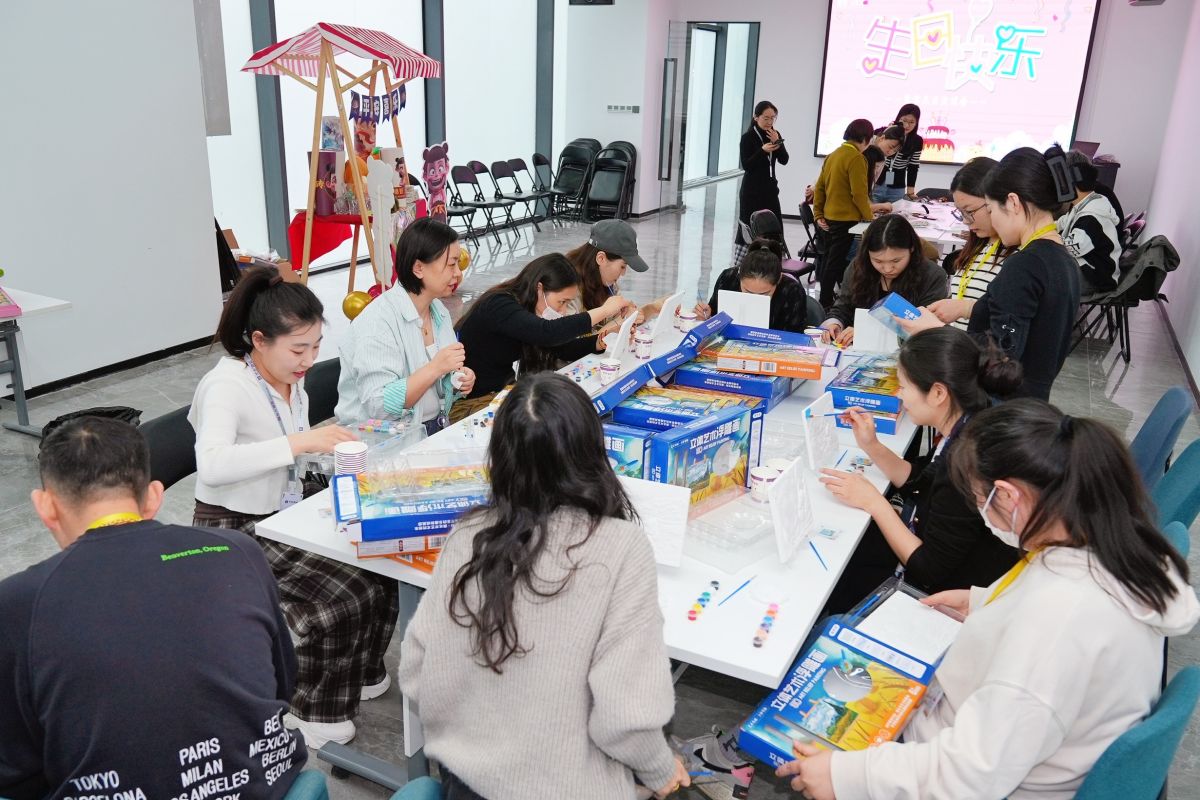 而更有意義的事情就是和大家一起做手工、玩遊戲——投擲乒乓球,彩繪立體藝術浮雕畫,diy手工包。