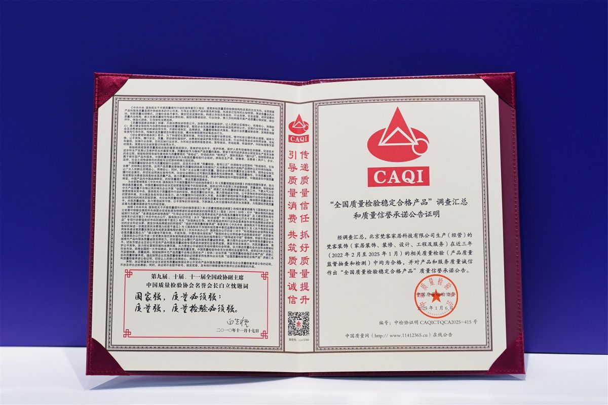 近日,梵客家裝收到來自中國質量檢驗協會頒發的榮譽證書,再度被評為《全國產品和服務質量誠信承諾企業》及《全國質量檢驗穩定合格產品》,再次印證梵客家裝在整裝市場的領軍地位。