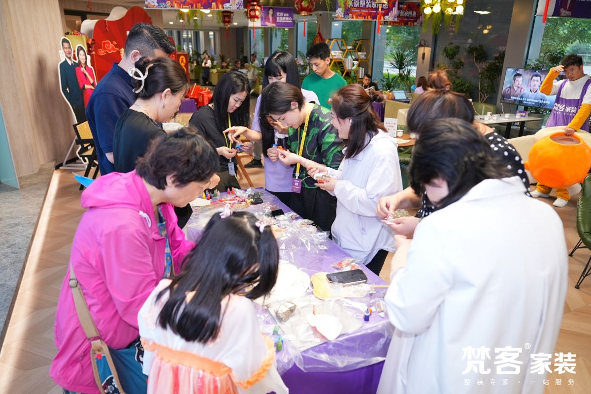 這個周末,梵客實景整裝家博惠收官日正好與端午/六一相不期而遇,遊戲活動也是豐富多彩。梵客的家人們帶著業主包起了錦囊,現場一片歡聲笑語。梵客集團副總裁/梵客家裝總經理任琳女士、秦天老師也積極投入到手工活動中,大家玩得不亦樂乎。