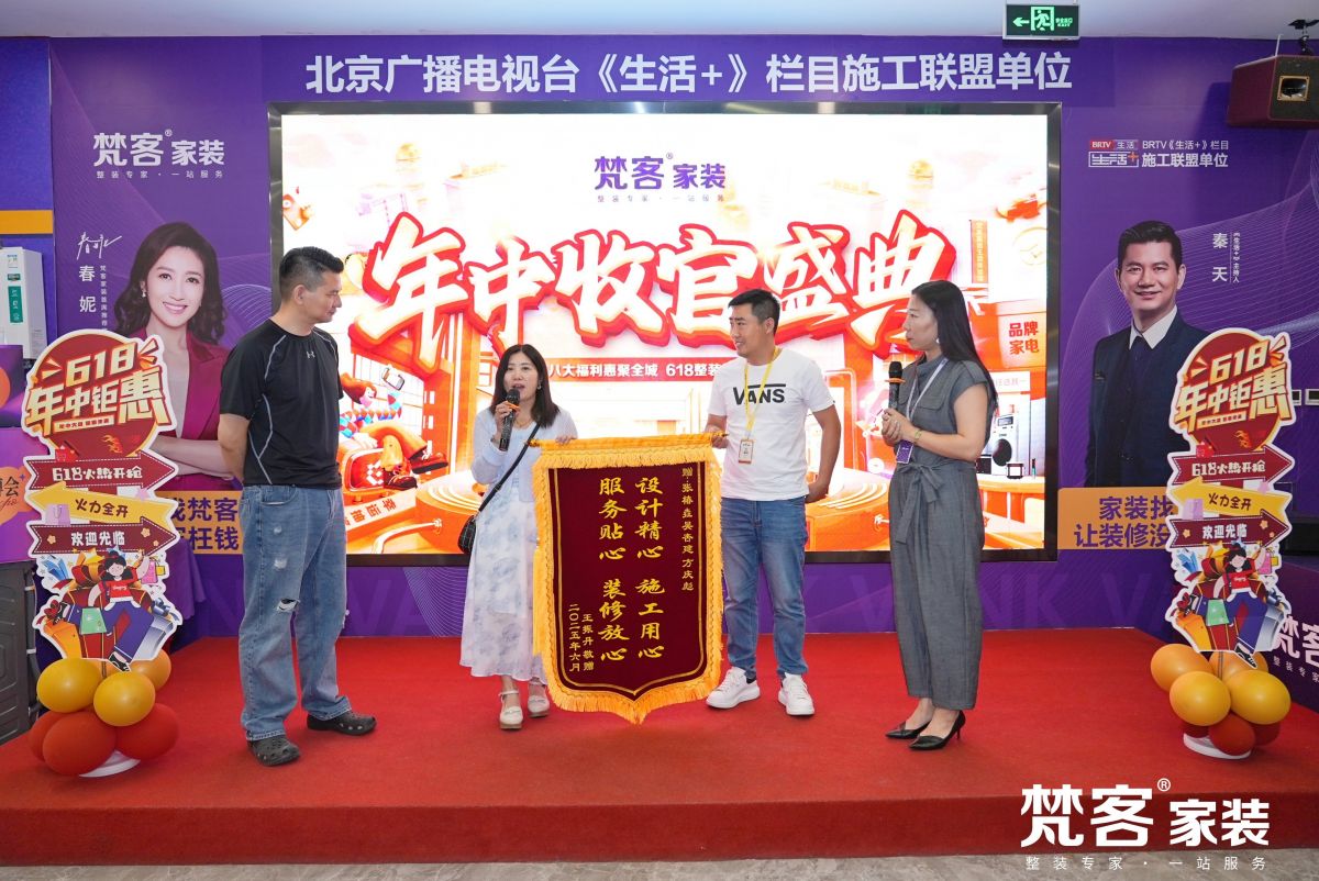 隨後,受邀上台的是梵客家裝的老朋友、北京廣播電視台《生活+》欄目主持人秦天老師。多年來,梵客家裝一直是其施工聯盟單位、指定施工企業;連續數年,著名節目主持人春妮都為梵客家裝首席推薦官。