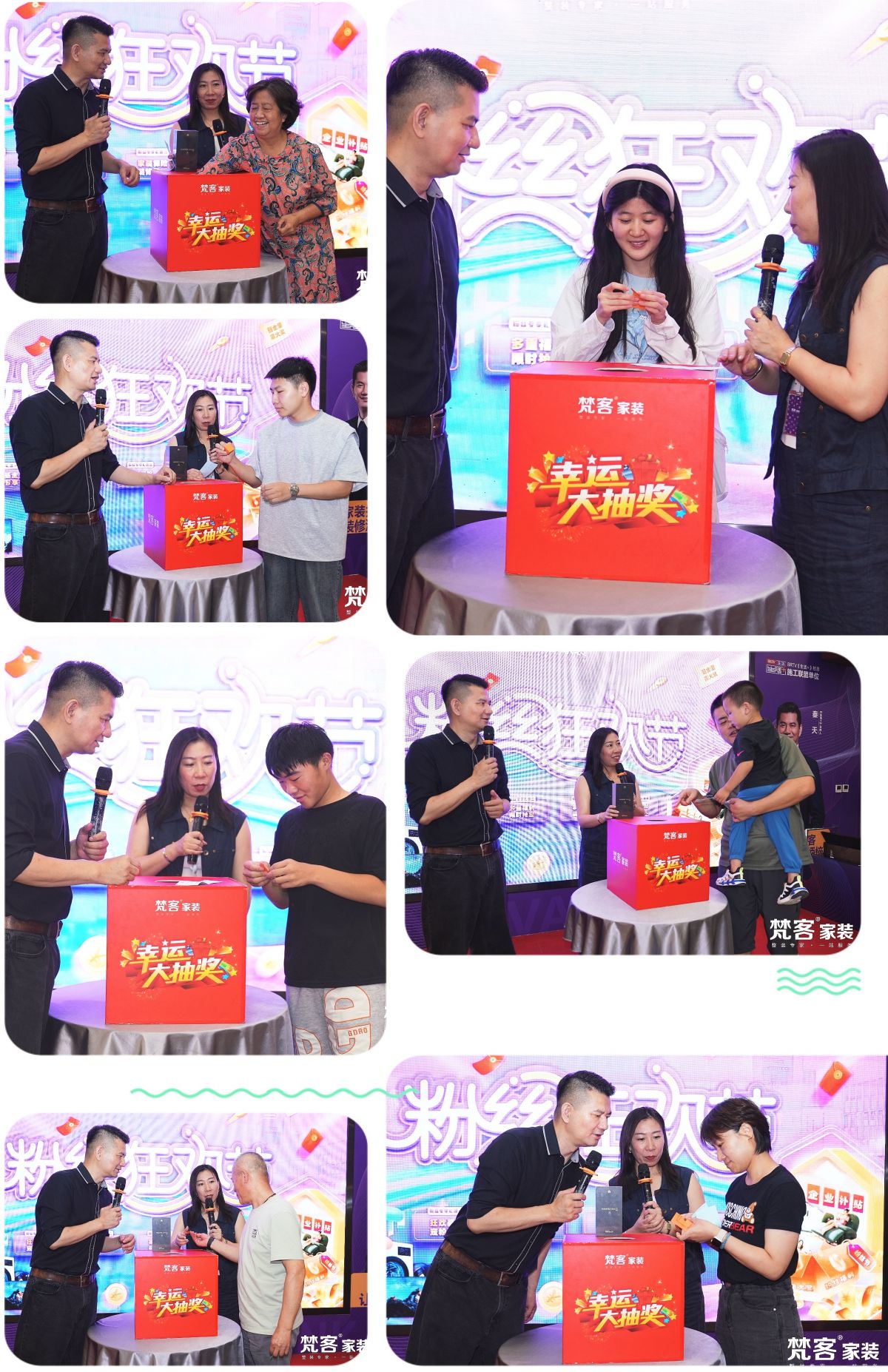 已yi簽qian約yue的de業ye主zhu也ye獲huo得de了le抽chou大da獎jiang的de機ji會hui,為wei感gan恩en回hui饋kui大da家jia對dui梵fan客ke一yi如ru既ji往wang的de支zhi持chi和he信xin賴lai,此ci次ci抽chou獎jiang現xian場chang升sheng級ji特te權quan,並bing延yan長chang抽chou獎jiang時shi間jian。大da牌pai家jia電dian、現金紅包、華為手機...陸續被有緣人抽走。裝修一套房子、交一個朋友,業主滿意而歸,梵客也感到由衷的欣慰。