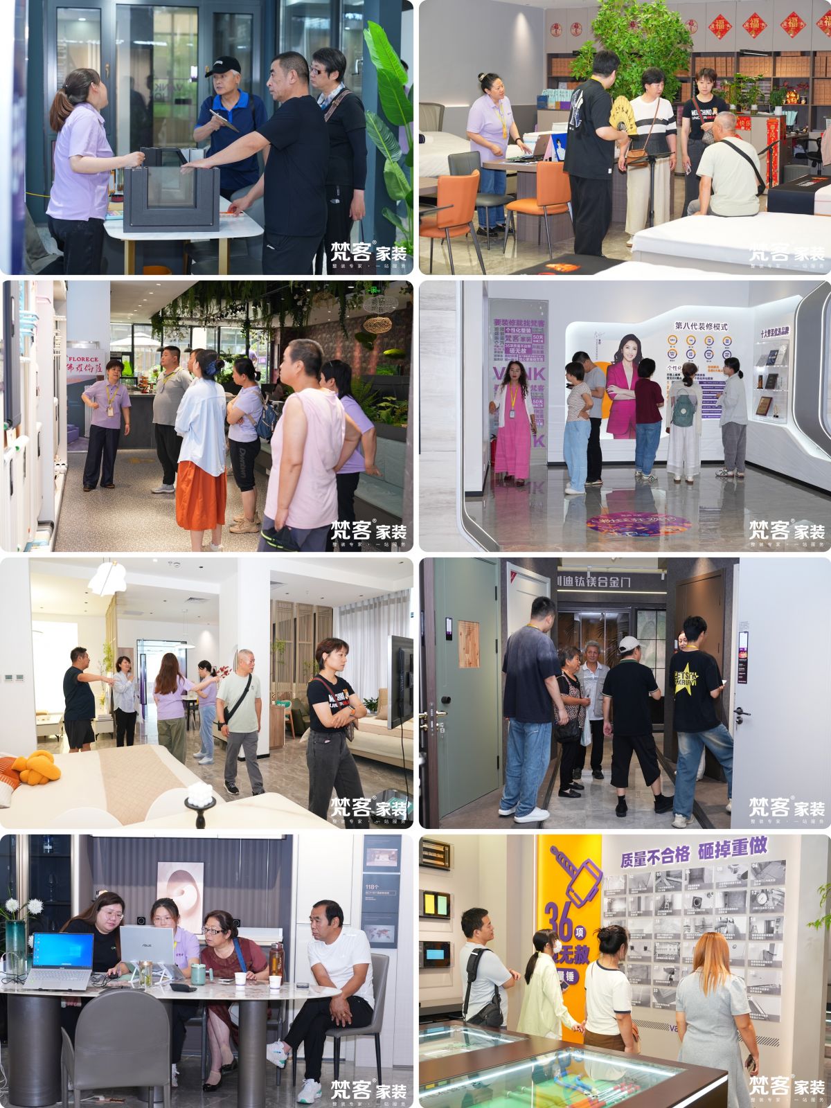 在企業文化館,了解梵客十八年發展曆程;榮譽榜區,陳列著獎狀、獎杯、證書及業主朋友送來的錦旗;實景樣板間,為業主點燃裝修靈感。這裏還有12大品類萬平米選材展區,彙聚瓷磚、衛浴、地板、木門、櫥櫃、定製、家電、家具、吊頂、暖氣、門窗、防盜門等國內外優質的150餘家建材品牌,為用戶提供了豐富的選擇,實現采買一站式解決方案。