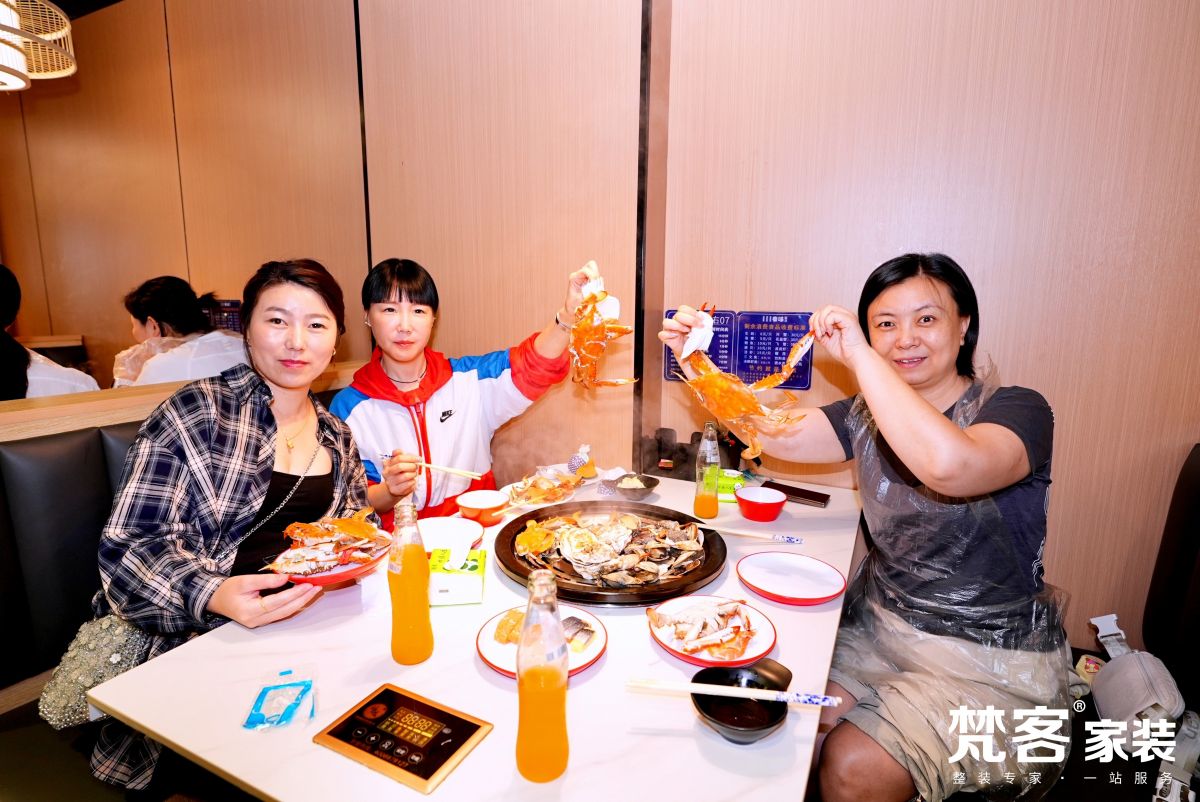 晚宴是海鮮大餐,吃到盡興時大家舉杯歡呼,帶著微醺的醉意,彼此祝福,向青春致敬,為夢想幹杯!突tu破po自zi我wo不bu設she限xian,巔dian峰feng之zhi上shang創chuang輝hui煌huang,工gong作zuo中zhong我wo們men是shi攜xie手shou拚pin搏bo的de好hao搭da檔dang,旅lv途tu中zhong更geng是shi共gong享xiang歡huan樂le的de好hao夥huo伴ban。梵fan客ke家jia裝zhuang十shi裏li河he店dian管guan理li層ceng精jing英ying戰zhan隊dui,麵mian對dui已yi經jing到dao來lai的de金jin秋qiu8月,依然信心十足。8月,我們一起加油,迎接新的凱旋!