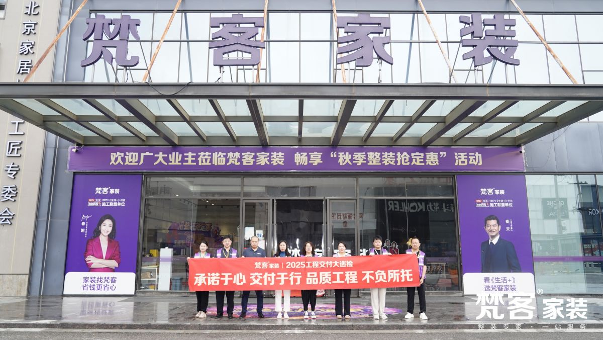 在服務落地上,梵客家裝嚴把質量關,梵客集團兩位副總裁共同踐行“雙總工地巡檢機製”,帶領巡檢小組親自抽檢一線施工工地,品質直管,嚴控到底,多崗聯動,互查互檢以確保施工質量。此外,還通過360度AI雲監理係統,實現24小時工地可視化,在線實時監控。