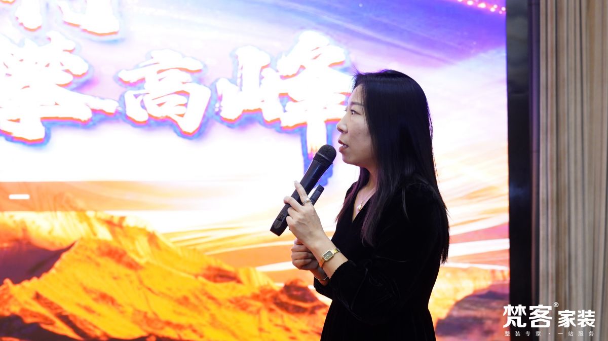 首先,梵客集團副總裁/梵客家裝總經理任琳女士發言致辭,總結了11月工作,麵對市場淡季,大家依然能無畏坎坷取得佳績,肯定了團隊的拚搏精神;同時年底衝關也不能放鬆,從對市場的把控到營銷活動的開展,以及程序的優化、方案的落實、客戶服務等方方麵麵都要盡心盡責,將用戶體驗做到更好,也為自己的2025交一份圓滿的答卷。
