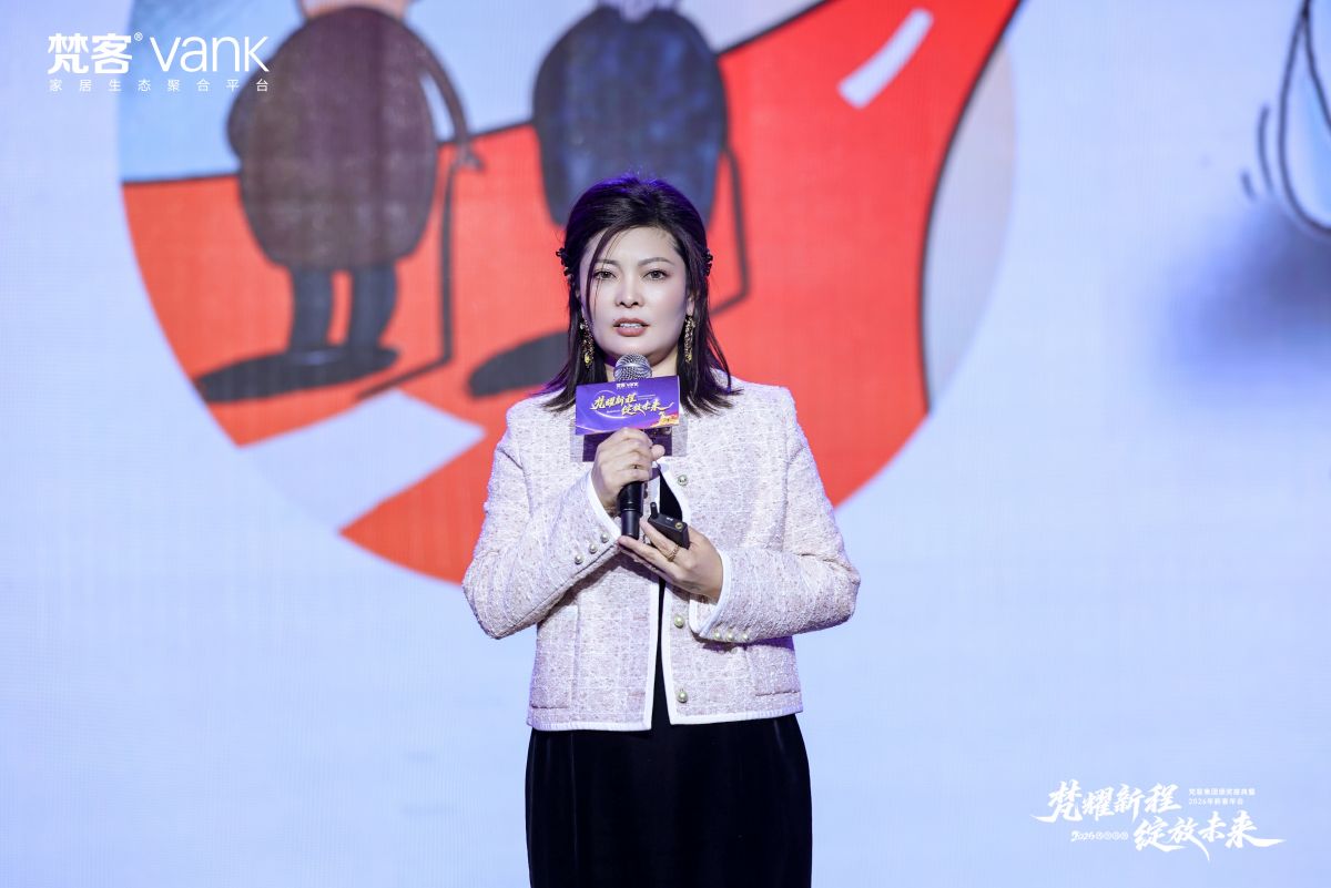 中裝協住宅產業分會秘書長胡亞南女士送上精彩演說:“feichangrongxingzaifankejituanshengdanianhuihedajiaxiangju。jiashimeihaodekaishi,jiashixingfudeguixiu,erwomenzaizuodegeweijiuchengzaizheweiguorendazaomeihaojujiahuanjingdelishizhongren。womenjinglilejingjihanlengde2025年,但是未來中國14億人口的家依然要裝,中國4.4億(yi)套(tao)的(de)存(cun)量(liang)住(zhu)宅(zhai)依(yi)然(ran)要(yao)裝(zhuang),我(wo)們(men)每(mei)位(wei)家(jia)裝(zhuang)從(cong)業(ye)者(zhe)都(dou)將(jiang)擔(dan)任(ren)起(qi)國(guo)人(ren)的(de)家(jia)的(de)一(yi)個(ge)更(geng)好(hao)的(de)未(wei)來(lai)。雖(sui)然(ran)我(wo)們(men)經(jing)曆(li)了(le)前(qian)所(suo)未(wei)有(you)的(de)寒(han)冬(dong),但(dan)冬(dong)天(tian)不(bu)是(shi)用(yong)來(lai)凍(dong)死(si)的(de),冬(dong)天(tian)是(shi)用(yong)來(lai)紮(zha)根(gen)的(de),我(wo)們(men)踏(ta)在(zai)存(cun)量(liang)市(shi)場(chang)春(chun)天(tian)的(de)開(kai)始(shi),我(wo)們(men)要(yao)播(bo)下(xia)存(cun)量(liang)市(shi)場(chang)的(de)種(zhong)子(zi),這(zhe)是(shi)解(jie)決(jue)消(xiao)費(fei)者(zhe)在(zai)存(cun)量(liang)市(shi)場(chang)家(jia)居(ju)痛(tong)點(dian)的(de)種(zhong)子(zi),是(shi)想(xiang)繼(ji)續(xu)找(zhao)我(wo)們(men)服(fu)務(wu)的(de)種(zhong)子(zi)。我(wo)們(men)的(de)行(xing)業(ye)裏(li)有(you)施(shi)工(gong)標(biao)準(zhun)、有驗收標準,居家適老化的設計標準也已經頒布實施,家裝行業的服務標準也正在製定當中…我們都在為國人有一個美好的家庭環境持續努力著。最後祝大家馬年大吉,祝梵客馬年奔騰向前!”