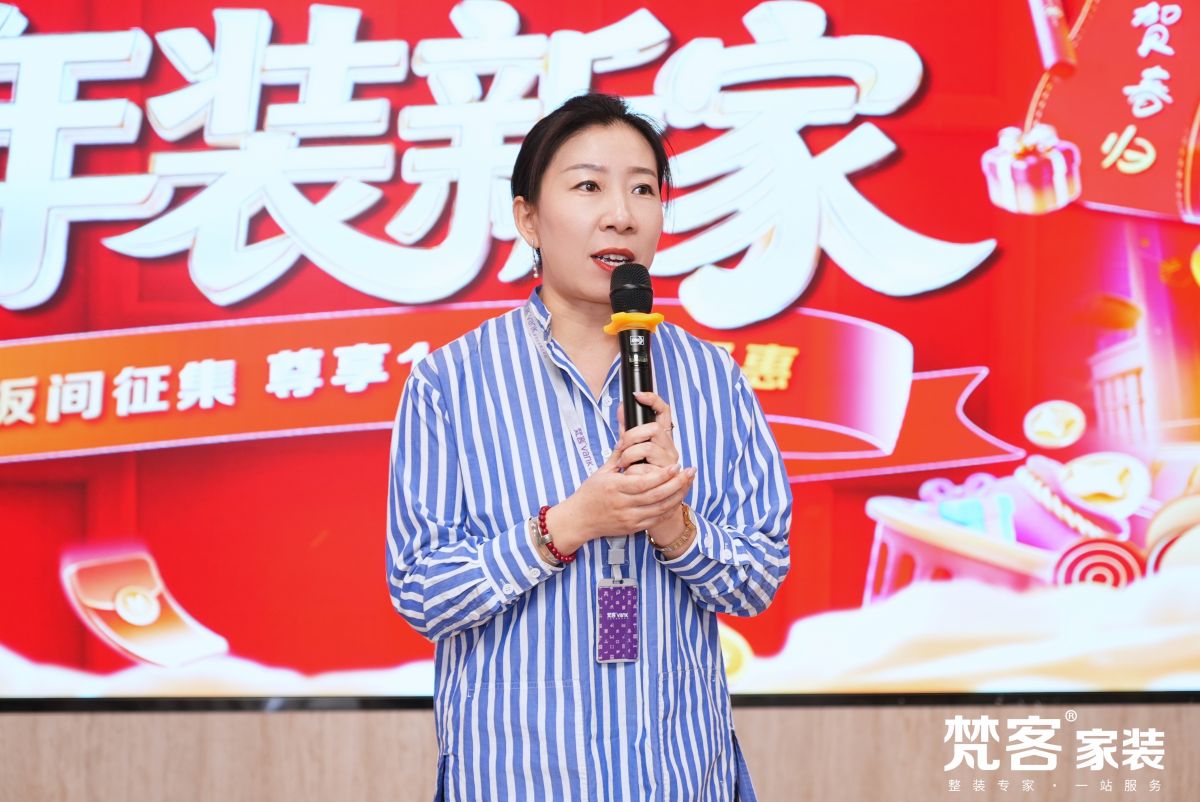 梵客集團副總裁/梵fan客ke家jia裝zhuang總zong經jing理li任ren琳lin女nv士shi也ye來lai到dao活huo動dong現xian場chang,和he大da家jia解jie讀du了le本ben次ci活huo動dong的de特te惠hui福fu利li及ji樣yang板ban間jian征zheng集ji程cheng序xu,大da手shou筆bi發fa放fang優you惠hui,希xi望wang業ye主zhu朋peng友you在zai裝zhuang修xiu旺wang季ji把ba握wo時shi機ji、贏取特權,裝出品質優且性價比高的暖意新家。