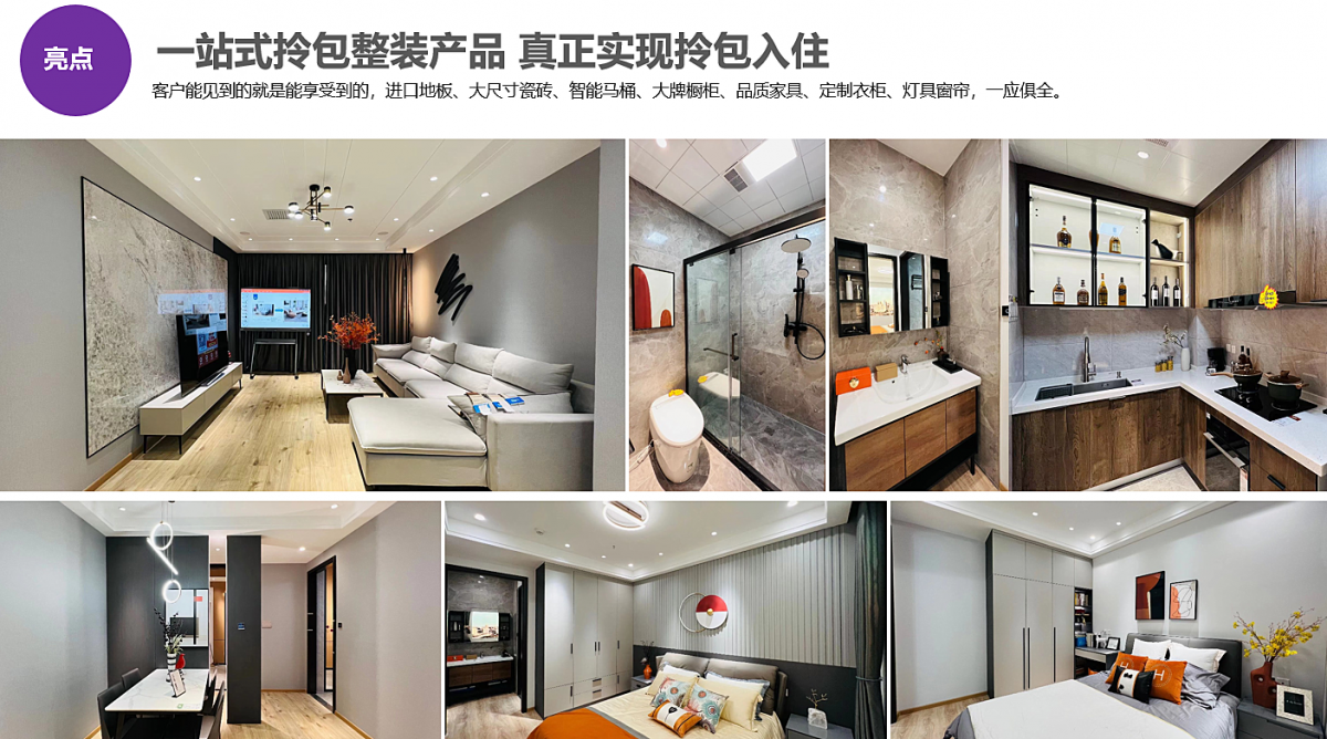 該整裝產品標配了8大國際品牌輔材、8大品類尊享級高檔主材、12大德標工程工藝、18大全包工程增配、20項人性化配置。同時配贈全屋9大智能家居產品、全屋5大舒適家居係統、全屋定製家具收納係統、全屋15件成品家具、全屋窗簾、全屋燈具、全屋6大尊享級專屬工藝、全屋入住環保檢測等,獲得用戶的一致認可,讓裝修更省心、更省錢、更環保。
