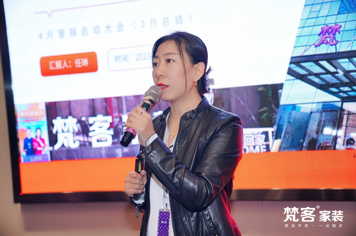 梵客集團副總裁、梵客家裝總經理任琳女士應邀出席大會,並進行精彩發言。分析3月業績產值、回顧3月大事件、總結3月營銷活動及直播影響力,同時也提出4月的目標任務及獎勵機製,對4月活動規劃、工作重點等進行深入解析。