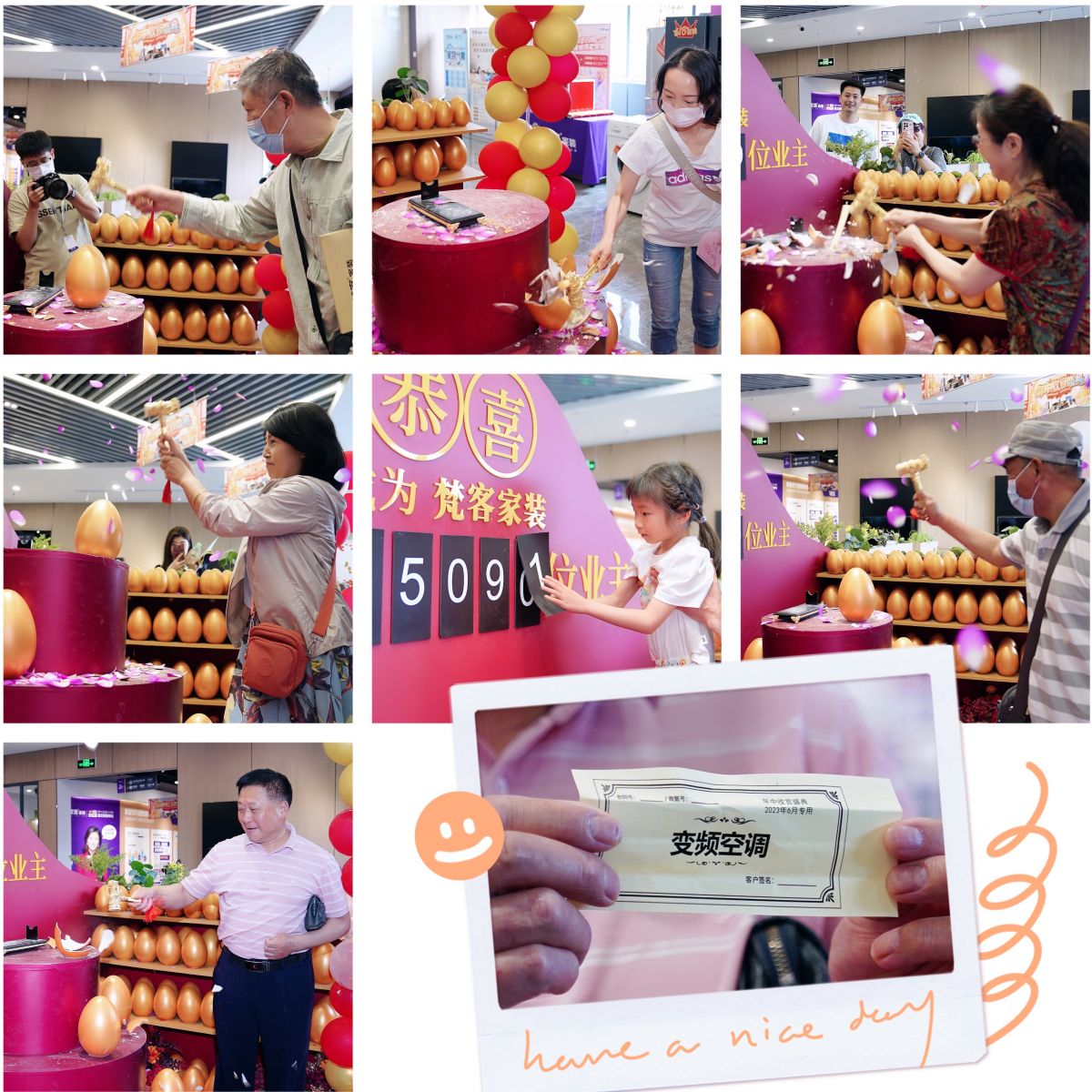 在這一天簽約的業主,還會享受到更大的福利,那就是由春妮老師主持的砸金蛋贏大獎活動。