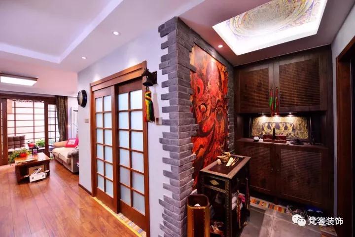 玄關做了裝飾,壁畫選用客戶自己去法海寺拍攝的廣目天王圖案;