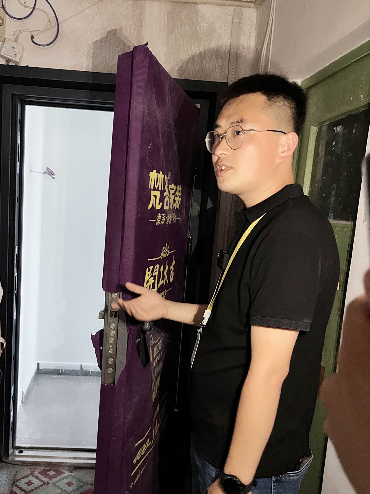 入ru戶hu大da門men,就jiu能neng看kan出chu裝zhuang修xiu的de用yong心xin程cheng度du。從cong進jin場chang開kai始shi,業ye主zhu換huan的de新xin防fang盜dao門men就jiu要yao保bao護hu起qi來lai,防fang止zhi搬ban瓷ci磚zhuan等deng硬ying物wu時shi,磕ke碰peng到dao門men導dao致zhi掉diao漆qi。整zheng個ge裝zhuang修xiu竣jun工gong後hou,保bao護hu才cai會hui撤che場chang。