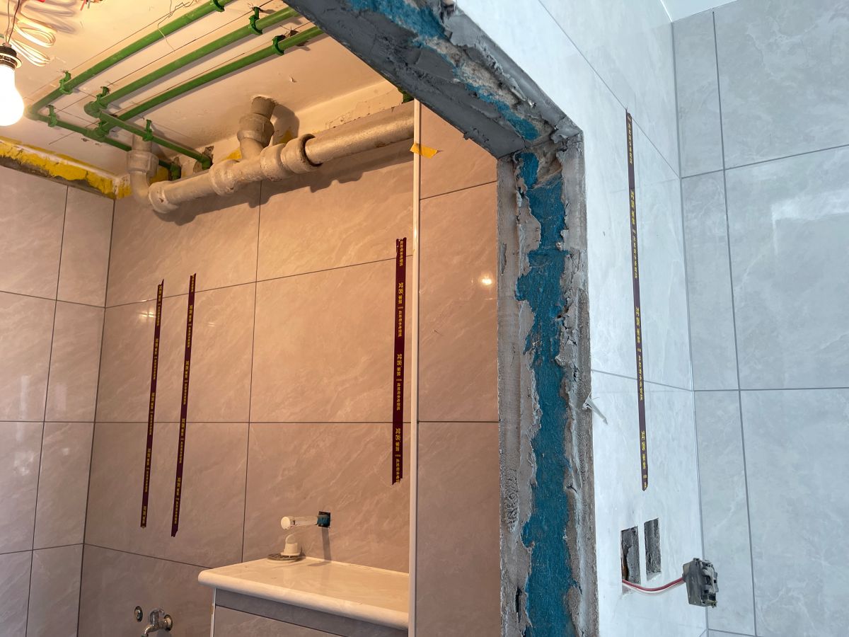 廚房、衛生間的牆磚都采用薄貼工藝。薄貼法采用“瓷磚黏結劑”,強度更高,黏結性是傳統砂漿的3-4倍,兌水即可使用,不需現場配比水泥砂漿,不需要做拉毛處理,薄貼厚度隻需3-5毫米,更安全穩固,空鼓率低,一天可鋪貼20平米,施工效率大大提高。