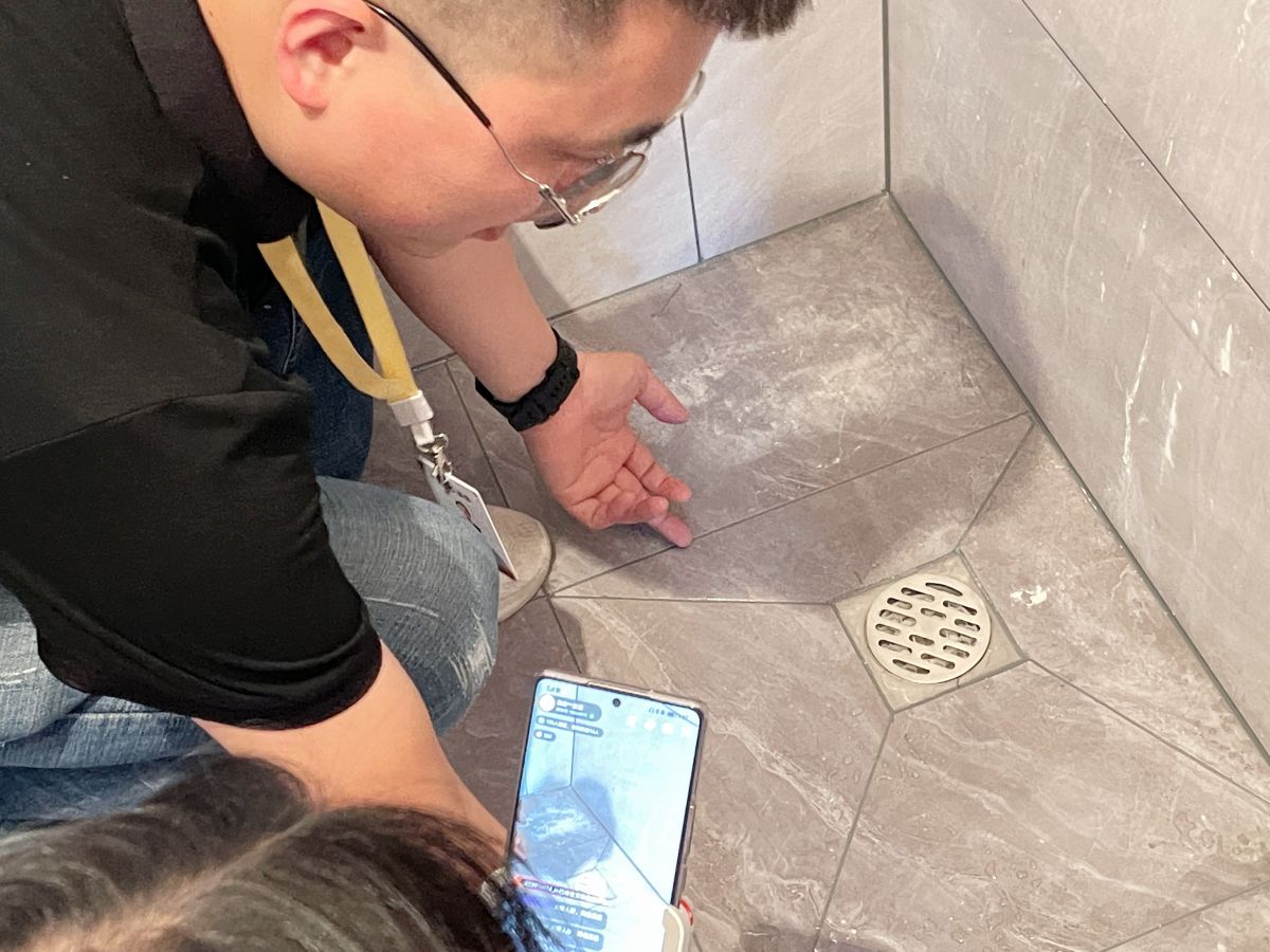 ↑ 衛生間的工藝,最重要的就是防水,梵客家裝對此有非常嚴格的驗收標準:滿刷1.8米高。如果隔壁空間緊挨牆的是收納櫃,衛生間防水會刷到頂。