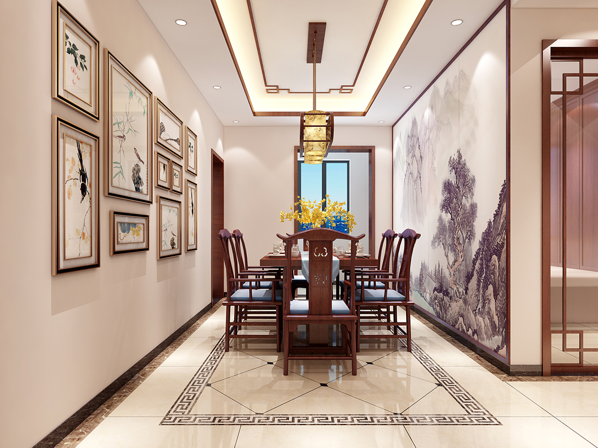 本案為中式古典,材質與顏色的選用以和諧為原則、無(wu)累(lei)贅(zhui)冗(rong)餘(yu)造(zao)型(xing),溫(wen)馨(xin)的(de)手(shou)法(fa),保(bao)留(liu)中(zhong)式(shi)風(feng)格(ge)所(suo)需(xu)要(yao)的(de)必(bi)要(yao)的(de)元(yuan)素(su),在(zai)使(shi)用(yong)麵(mian)積(ji)比(bi)例(li)上(shang)推(tui)陳(chen)出(chu)新(xin),結(jie)合(he)配(pei)飾(shi)上(shang)力(li)求(qiu)指(zhi)引(yin)居(ju)室(shi)的(de)主(zhu)人(ren)以(yi)輕(qing)鬆(song)、愉快的狀態流連於居室營造的氣氛中。客餐廳十分淡雅,這裏沒有多餘的色彩、布置和家具,沒有喧囂與繁冗,一派寧靜悠遠;設計將原本不規則且略顯零亂的天花加以簡化整合;設計采用傳統的入戶玄關門廳把客廳與餐廳兩個空間加以適當區分,形成一個隔而不斷,分而不離的互動空間,愜意的、時尚的、成功人士的品質生活體驗盡在其中。