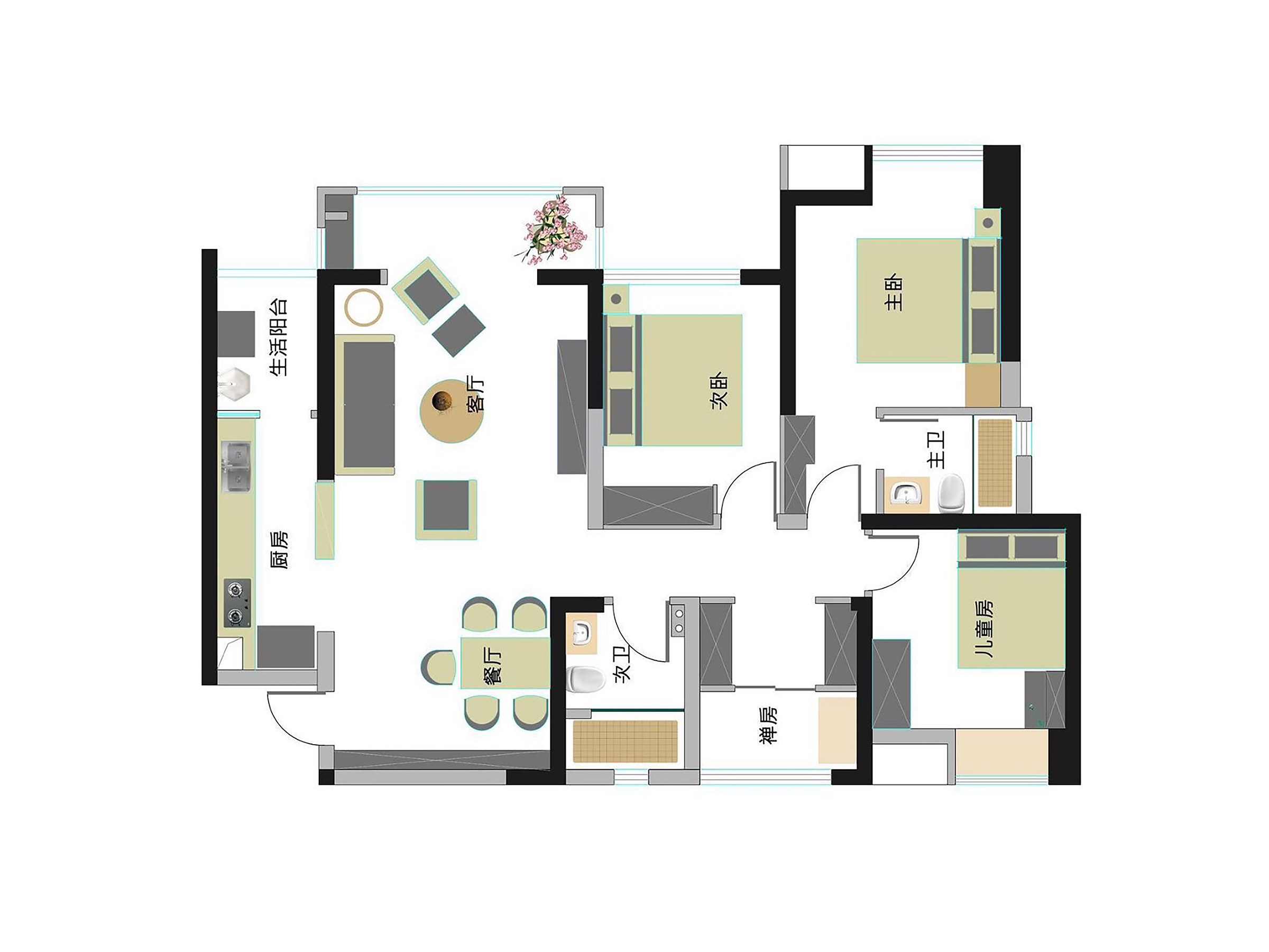 潮白河孔雀城110㎡兩居室現代簡約風格