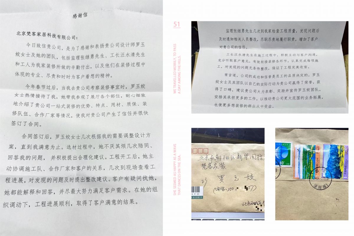 近jin幾ji年nian,梵fan客ke家jia裝zhuang頻pin頻pin收shou到dao客ke戶hu的de感gan謝xie信xin,和he紅hong底di金jin字zi的de錦jin旗qi一yi起qi,將jiang這zhe份fen榮rong譽yu送song達da,不bu僅jin體ti現xian了le對dui梵fan客ke的de感gan激ji之zhi情qing,還hai有you信xin任ren與yu支zhi持chi,以yi及ji對dui梵fan客ke家jia裝zhuang及ji整zheng個ge服fu務wu團tuan隊dui的de肯ken定ding!