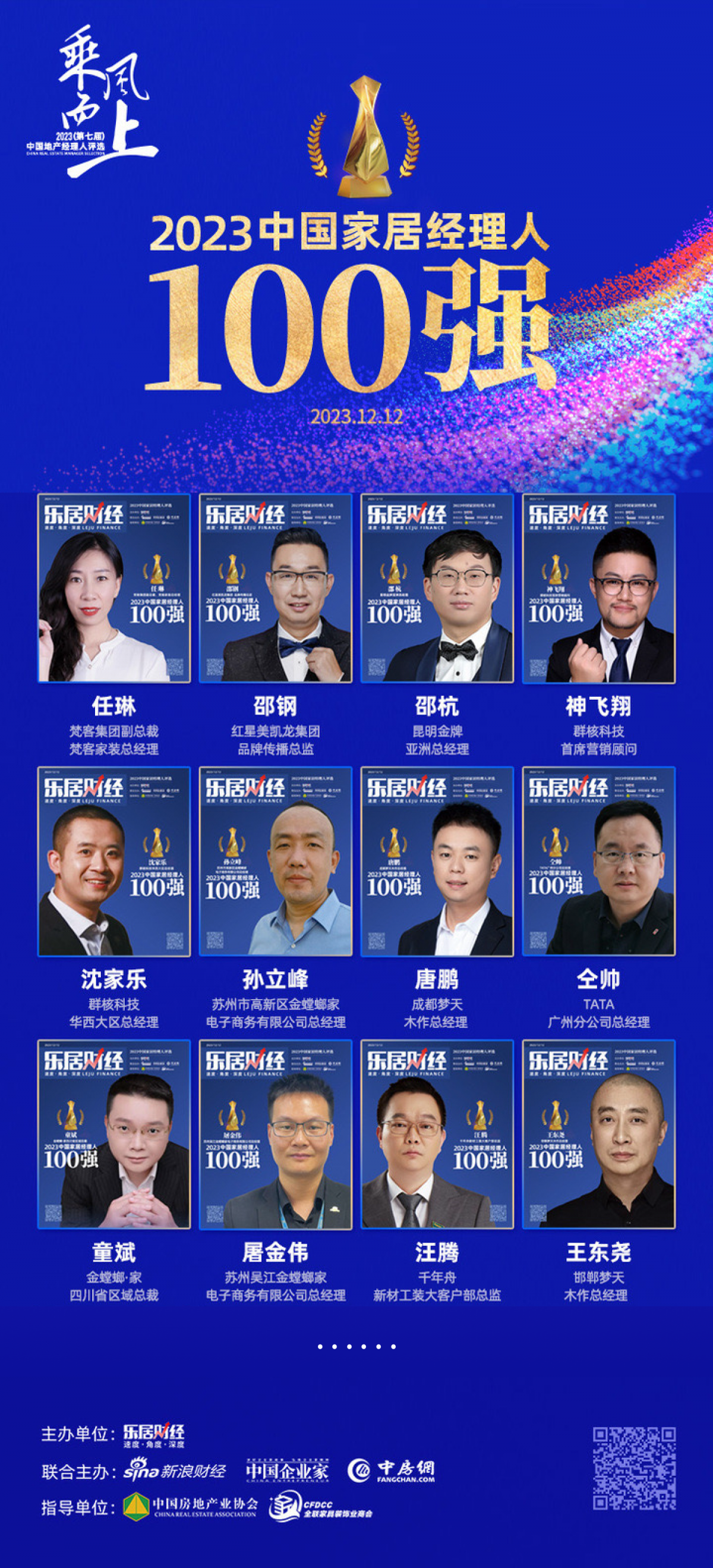 12月12日,2023(第七屆)中國地產經理人評選榮譽發布會如期舉行,“2023中國家居經理人100強”榜單正式揭曉,梵客集團副總裁、梵客家裝總經理任琳女士上榜《2023中國家居經理人100強》。