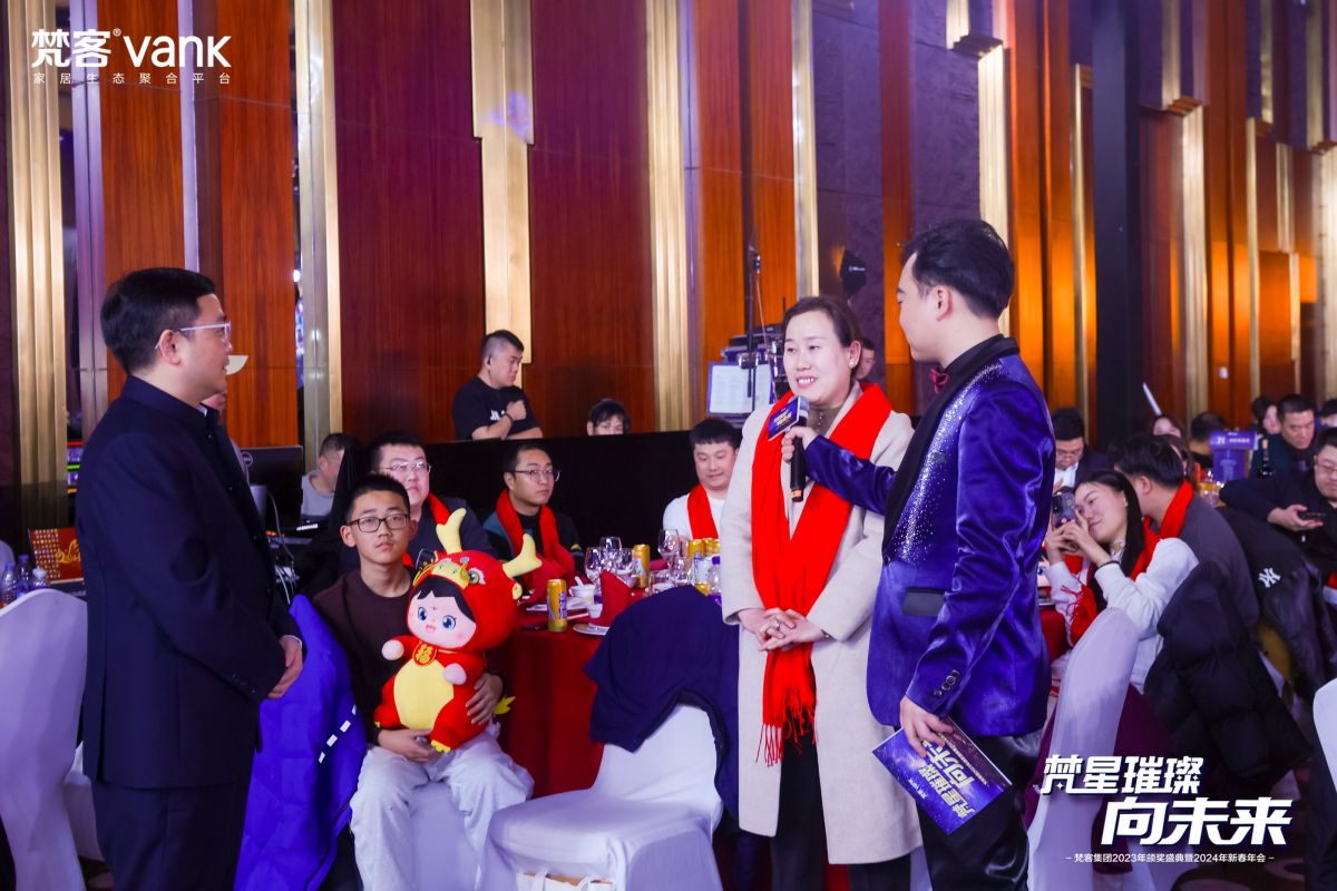 “在這美好的日子迎來了梵客集團2024年年會,首先祝大家新年快樂!在過去的2023年,市場麵臨很大挑戰,但是在梵客人的辛勤努力下取得了業績翻倍的成績。相信在大家的支持下,2024年梵客依然會取得更大的成績,實現業績再次翻倍的目標…”