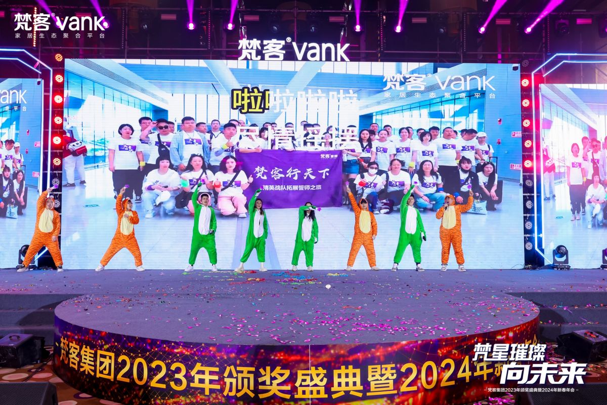 頒獎間隙還進行了團隊風采展示,來自梵客家裝營銷中心、梵客家裝交付中心、吉築裝飾、梵客微裝的小夥伴用激昂的鬥誌,體現了敢拚敢贏的精神。