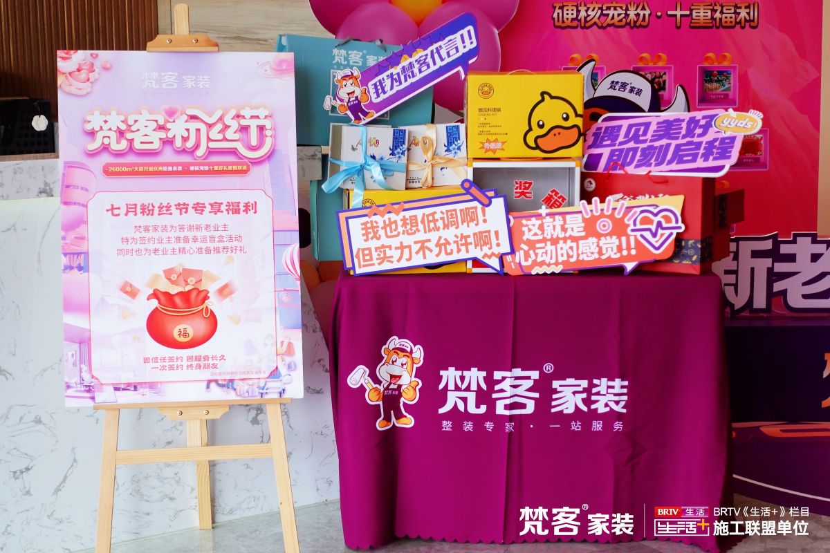 七月,梵客家裝迎來一年一度寵粉月,不僅提升福利豪禮,選購體驗也更加人性化,再次體現一家大型家居裝飾企業的綜合實力。通往感恩回饋的大門由浪漫粉開啟,到店伴手禮、幸運盲盒、遊戲抽獎、砸金蛋贏大獎…都會送上。硬核寵粉讓行動變得更有底氣。