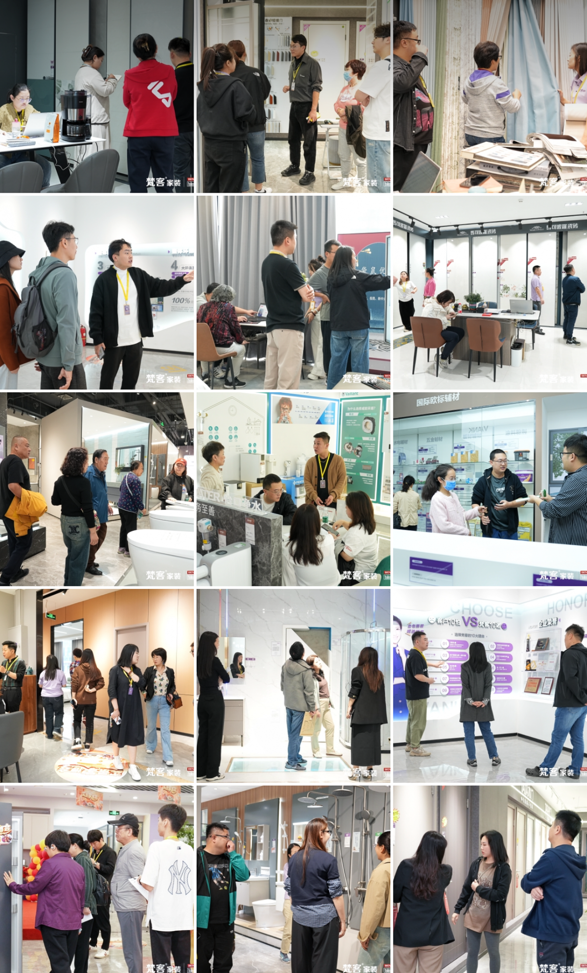 梵客家裝在十裏河和奧體中心共有總共麵積46000㎡的展廳,這裏為業主提供了一站式解決方案。展廳配置品牌區、材料區、軟裝區、家選區、咖啡吧、休閑洽談區、德標整裝工藝實景展示區等,以及多套1:1實景樣板間;萬平米選材區彙聚了瓷磚、衛浴、地板、木門、櫥櫃、定製、家電、家具、吊頂、暖氣、門窗、防盜門等國內外優質的150餘家建材品牌,業主不用東奔西跑,輕鬆實現采買。