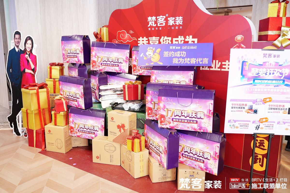 活動接近尾聲,為了給活動助力,北京廣播電視台《生活+》節目主持人秦天老師也來到現場,送上《生活+》施工聯盟協議,為京城百姓裝修多了一層保障。多年來,梵客家裝都是其施工聯盟單位、指定施工單位,數據、口碑等都名列前茅。連續五年,著名節目主持人春妮都為梵客家裝首席推薦官。