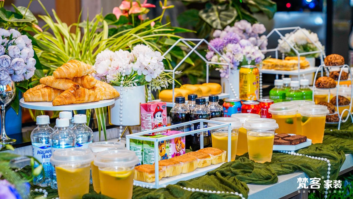 梵客家裝奧體中心店的活動大廳,伴隨著業主的陸續到場早已熱鬧非凡,抽獎牆擺出造型,禮品牆堆出高度…音樂歡喜、還有裹挾著奶油香的甜品也散發著誘人的氣息…這不僅是一場簽約活動的盛典,更是一次梵客大家庭的聚會。