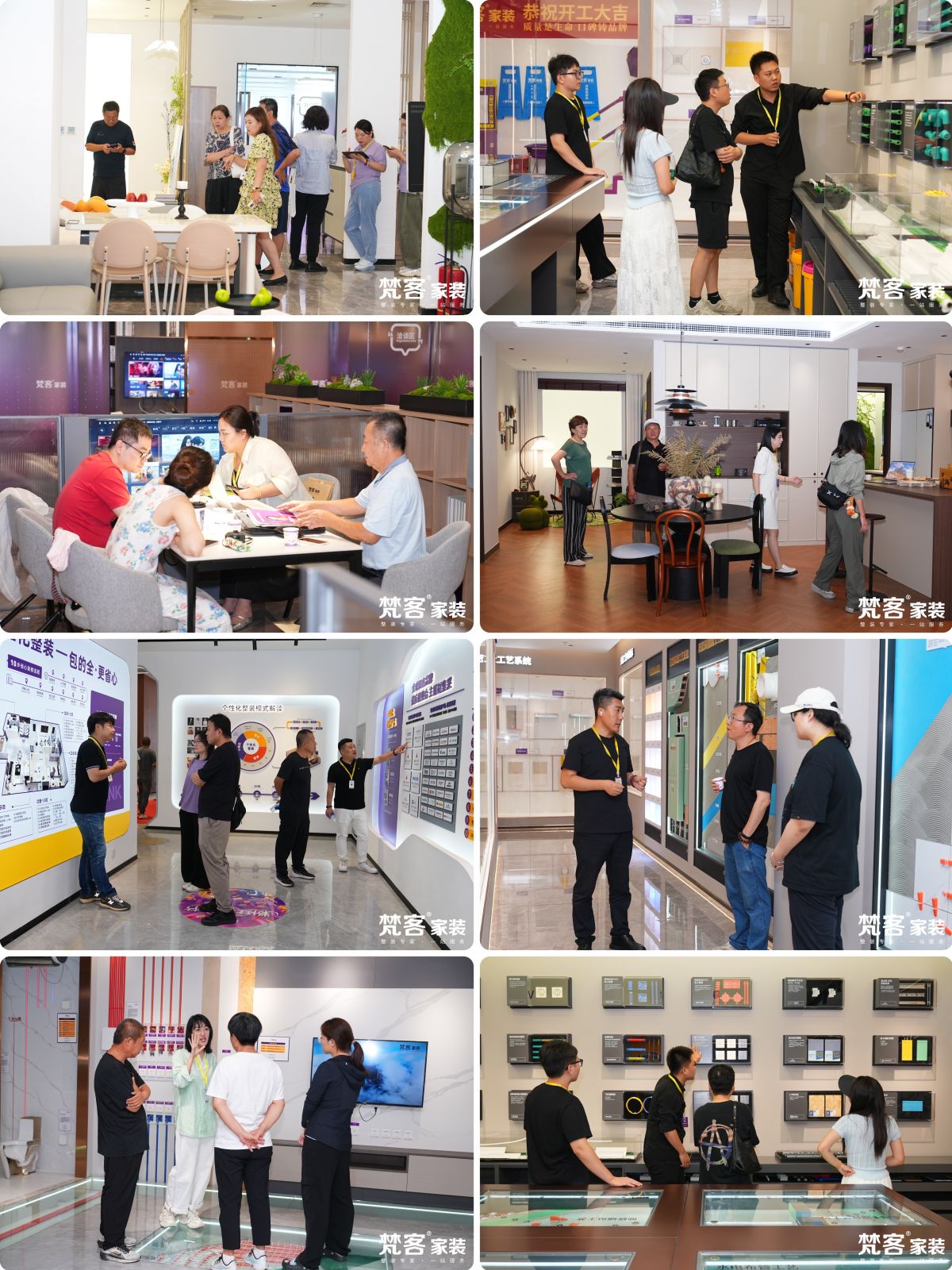 在企業文化館,了解梵客十八年發展曆程;榮譽榜區,陳列著獎狀、獎杯、證書及業主朋友送來的錦旗;實景樣板間,為業主點燃裝修靈感。這裏還有12大品類萬平米選材展區,彙聚瓷磚、衛浴、地板、木門、櫥櫃、定製、家電、家具、吊頂、暖氣、門窗、防盜門等國內外優質的150餘家建材品牌,為用戶提供了豐富的選擇,實現采買一站式解決方案。