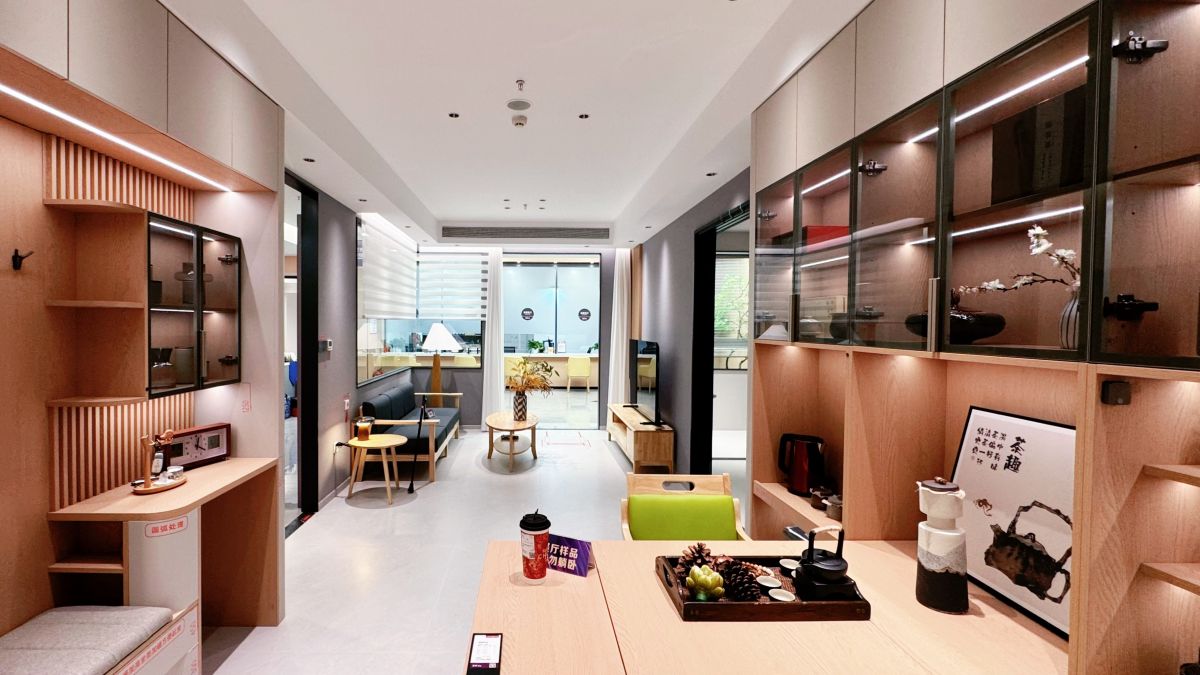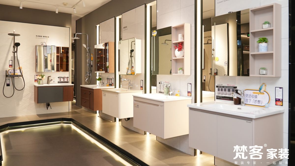 城外誠店采用更新穎的展館設計理念,共三層,設有品牌館、工藝工法區、七宅一生實景樣板間、選材區、軟裝家具展區、洽談區等場景,戰略合作150餘家建材品牌,為用戶提供更豐富的選擇,不用東奔西跑,就可實現一站式整裝解決方案。輕鬆舒適的環境、整齊劃一的動線、琳琅滿目的產品、匠心獨具的工藝…讓逛家裝展廳成為一種享受,也讓來梵客的業主朋友體會到賓至如歸的感覺。