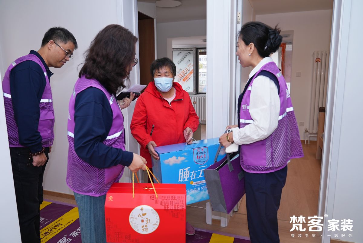 業主今天也來到現場,送上錦旗以表對梵客家裝的感謝,紅底金字的“雪中送炭”、“無償服務”耀眼奪目,更堅定了梵客家裝做好服務的決心。巡檢小組也為業主送上伴手禮,感謝信賴。