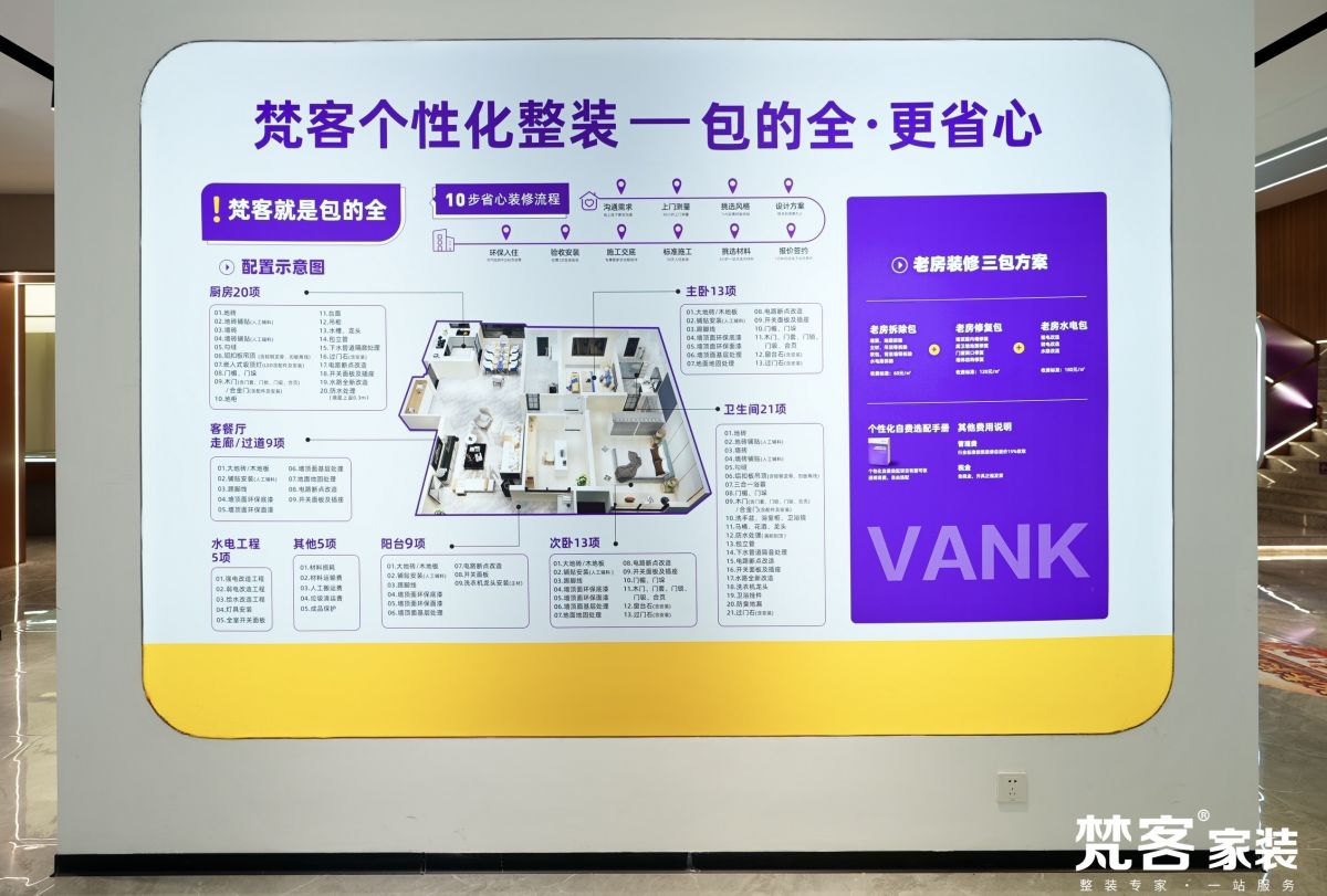 透明化是梵客家裝建立消費信任的關鍵。長期以來,“增項漏項”是家裝行業的沉屙頑疾,也是消費者最為擔憂的問題之一。為徹底解決這一痛點,梵客家裝主動發布《透明家裝個性化自費項目選配手冊》,將裝修過程中的標配項目、選配項目、收費標準等全部清晰列明,做到項目透明、價格透明、工藝透明。