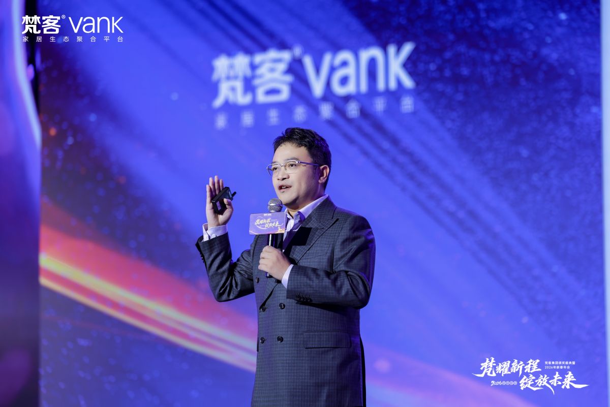 企業的發展離不開領航人的指引,梵客集團董事長李靜先生緩緩走上台,深切致辭:“感謝每位今天到場的朋友!2025年,在市場下行的情況下,梵客集團各體係均創新高,離不開大家的辛苦付出,今天的這份榮耀獻給所有的梵客家人。麵對已經到來的2026年,我們依然要逆勢上行,做這個行業最亮的那道光!”