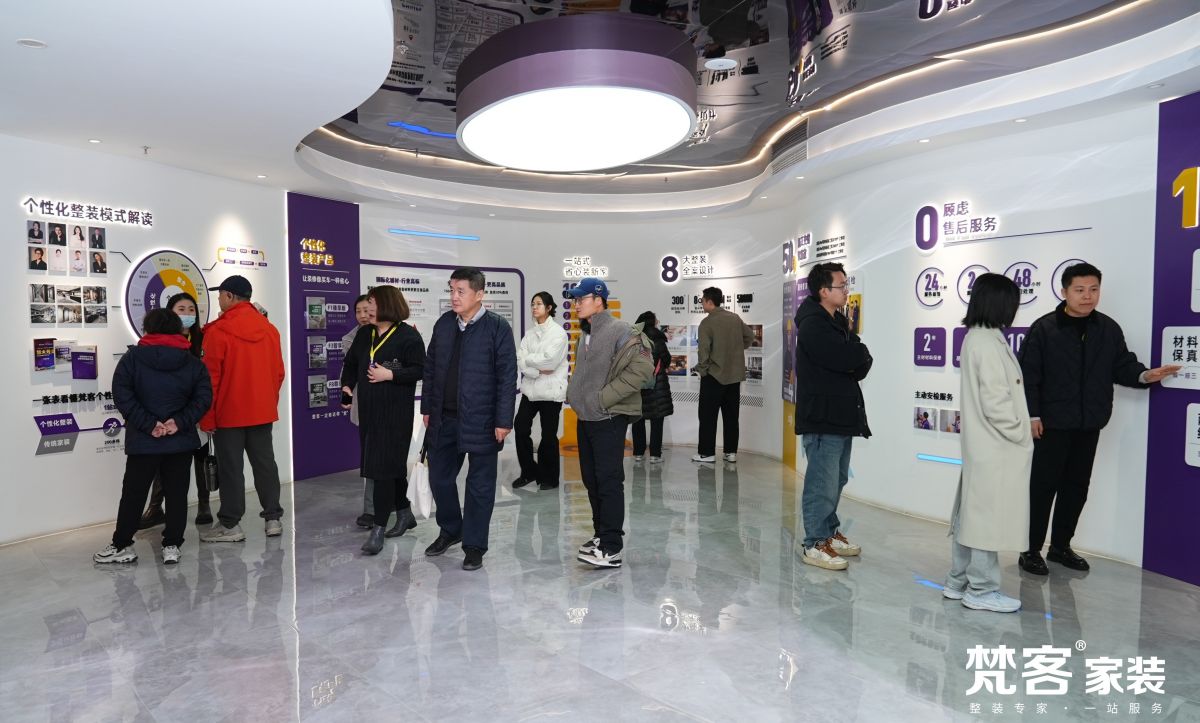 在這裏,了解梵客家裝十九年發展曆程及所獲榮譽獎項,大屏幕不間斷播放企業宣傳片、錄製的訪談節目。此外,還有梵客家裝首推的個性化拎包整裝模式的介紹,讓初次來梵客家裝的業主朋友能更快更深入地了解企業。