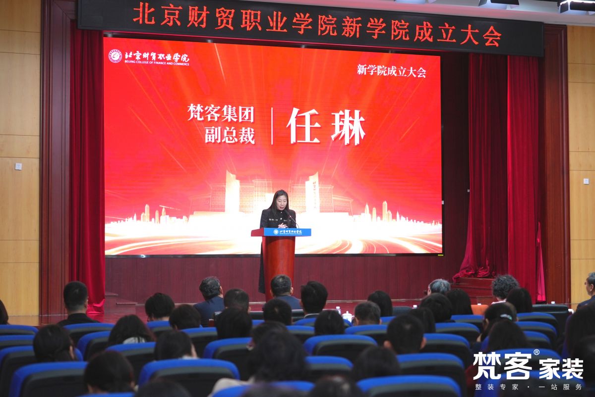 “很榮幸受邀參加北京財貿職業學院智慧城市工程學院更名儀式,見證梵客智能家裝產業學院的正式成立。建築行業正朝著數字化、智能化、智慧化加速轉型,智慧城市建設成為城市發展的核心方向,而智能家裝作為智慧城市的重要組成部分,正迎來前所未有的發展機遇。