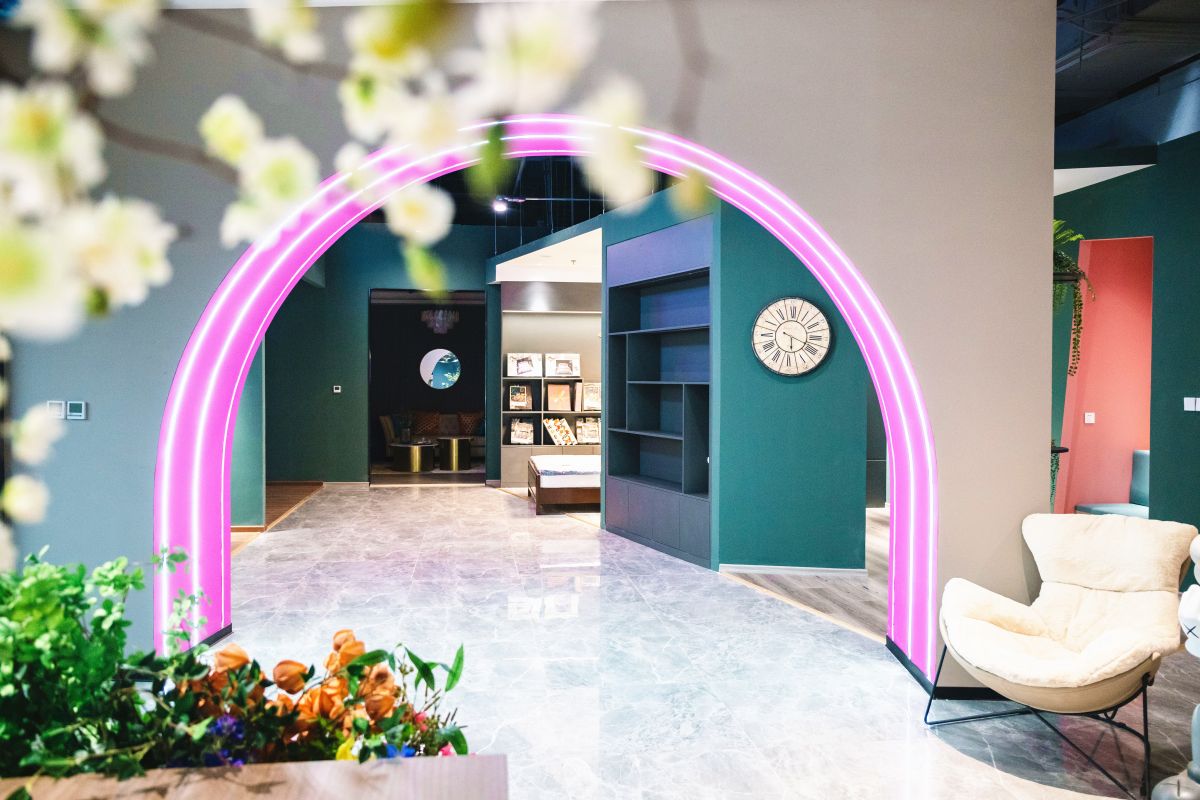特別是2021年,梵客家裝營建了號稱京城單體麵積最大的20000㎡的網紅家居生活體驗館,這裏有22處精美絕倫的網紅打卡地,15套1:1實景樣板間,以及咖啡吧、茶歇廳、露台花園,各種創意新穎、設計獨特的接待室、會議室等等,更是創造了業內家居體驗館方麵的典範。