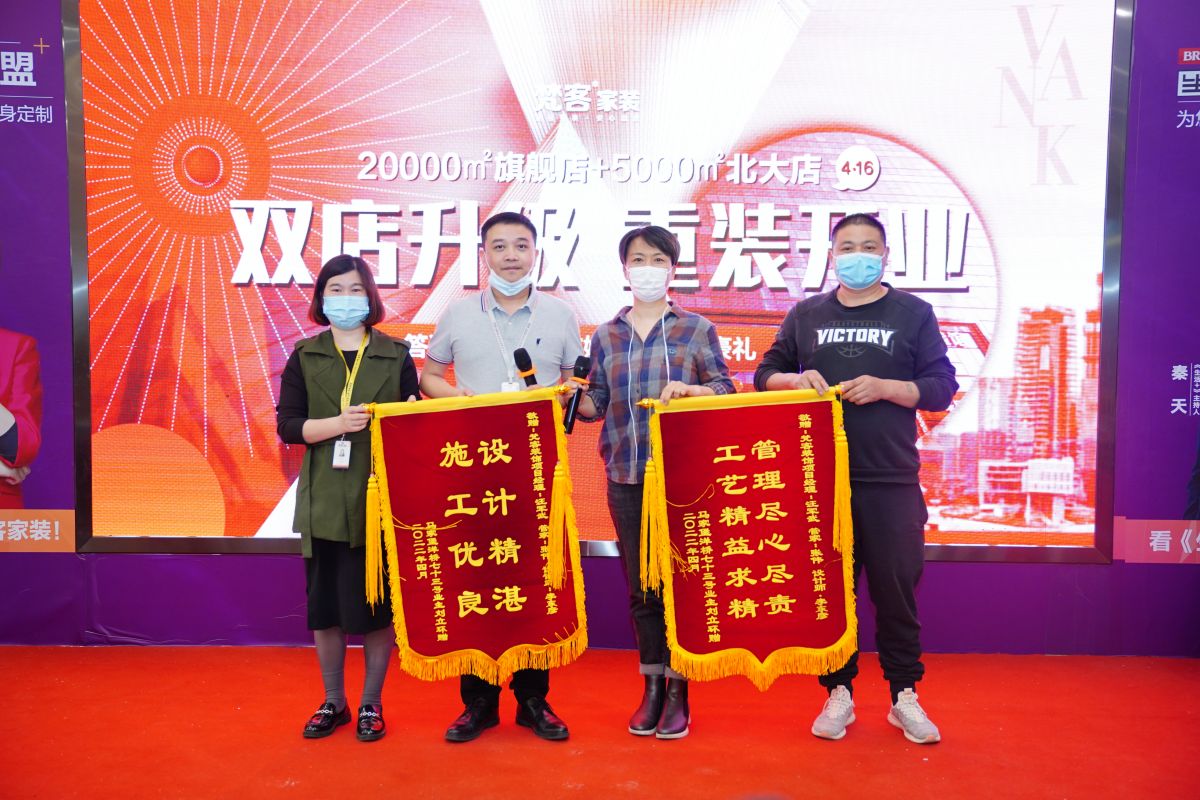 “裝修的新家細致完美,錦旗一個送梵客,一個送工長,代表家裝服務有保障,工地施工有保障。”