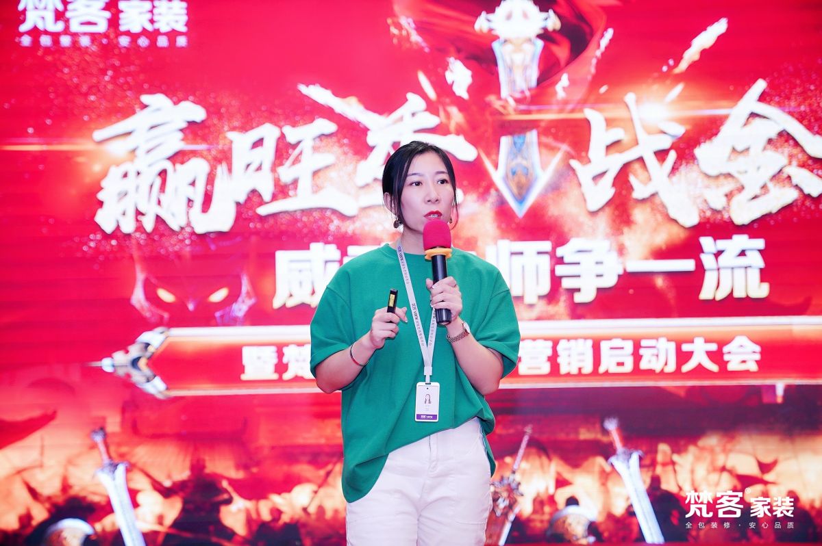 拓展結束後,9月營銷大會正式開啟。梵客集團副總裁、梵客家裝總經理任琳女士為大會拉開序幕:“這次大會別具一格,我親眼見證了在整個拓展訓練過程中,大家的默契配合,團隊氛圍、凝聚力都得以體現,活動非常成功...”隨後,任總向大家做了8月工作回顧並發布了9月的激勵政策及目標。