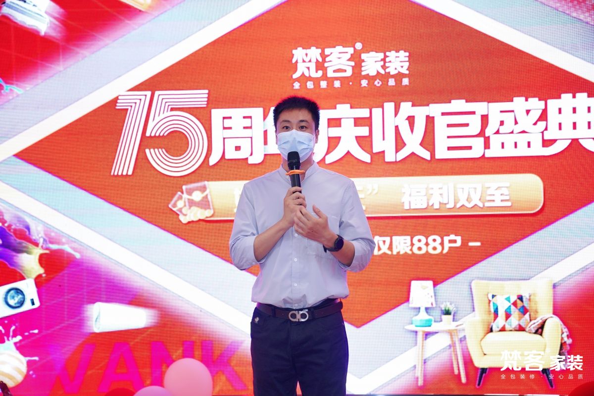 “很高興和大家一起歡度梵客家裝15周(zhou)年(nian)盛(sheng)典(dian),梵(fan)客(ke)的(de)發(fa)展(zhan)離(li)不(bu)開(kai)每(mei)位(wei)朋(peng)友(you)的(de)支(zhi)持(chi)與(yu)信(xin)任(ren),梵(fan)客(ke)的(de)產(chan)品(pin)不(bu)斷(duan)迭(die)代(dai)更(geng)新(xin),隻(zhi)為(wei)做(zuo)到(dao)一(yi)價(jia)全(quan)含(han),為(wei)大(da)家(jia)提(ti)供(gong)更(geng)便(bian)捷(jie)的(de)服(fu)務(wu),讓(rang)用(yong)戶(hu)拎(lin)包(bao)入(ru)住(zhu)。感(gan)謝(xie)各(ge)位(wei)業(ye)主(zhu)朋(peng)友(you)選(xuan)擇(ze)梵(fan)客(ke)家(jia)裝(zhuang),梵(fan)客(ke)也(ye)會(hui)一(yi)如(ru)既(ji)往(wang)做(zuo)好(hao)服(fu)務(wu),祝(zhu)大(da)家(jia)在(zai)豐(feng)收(shou)的(de)9月,在梵客有更多的收獲。”
