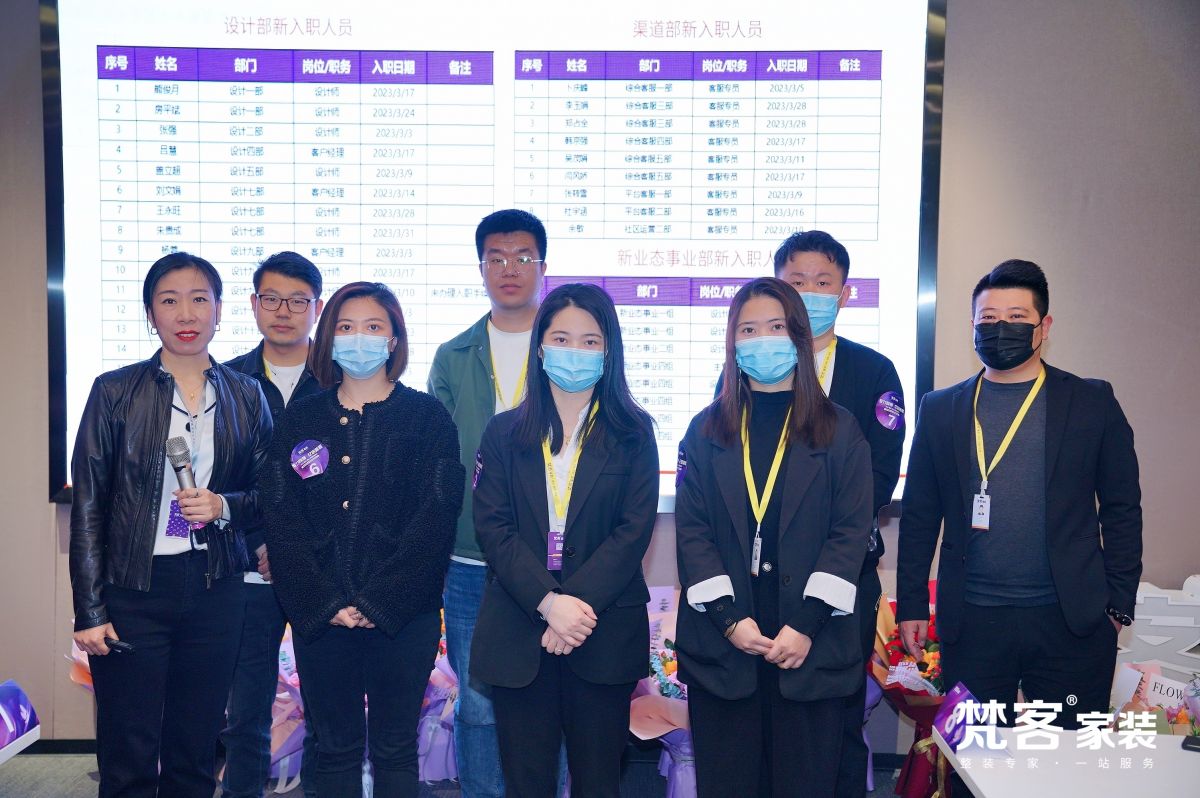 大會的第一個環節,歡迎新員工入職。梵客家裝廣納人才,並為員工提供優質的工作環境和機遇。在梵客,可享受生日會、年度盛會、現金激勵、年終分紅、出國遊等一係列高品質福利。未來,新員工將融入梵客大家庭,和大家一起並肩作戰,共創輝煌。